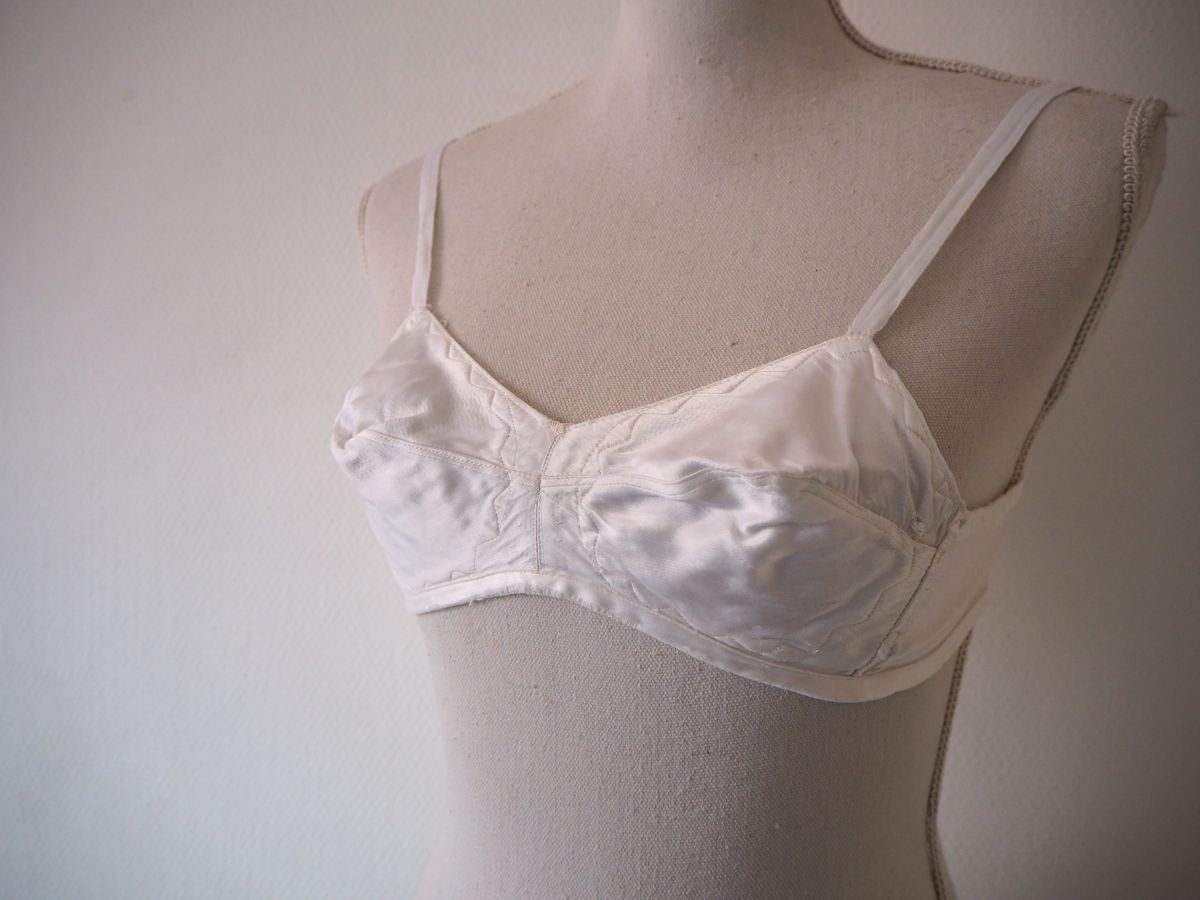 Soutien-gorge brassière en satin de soie blanc nacre vintage