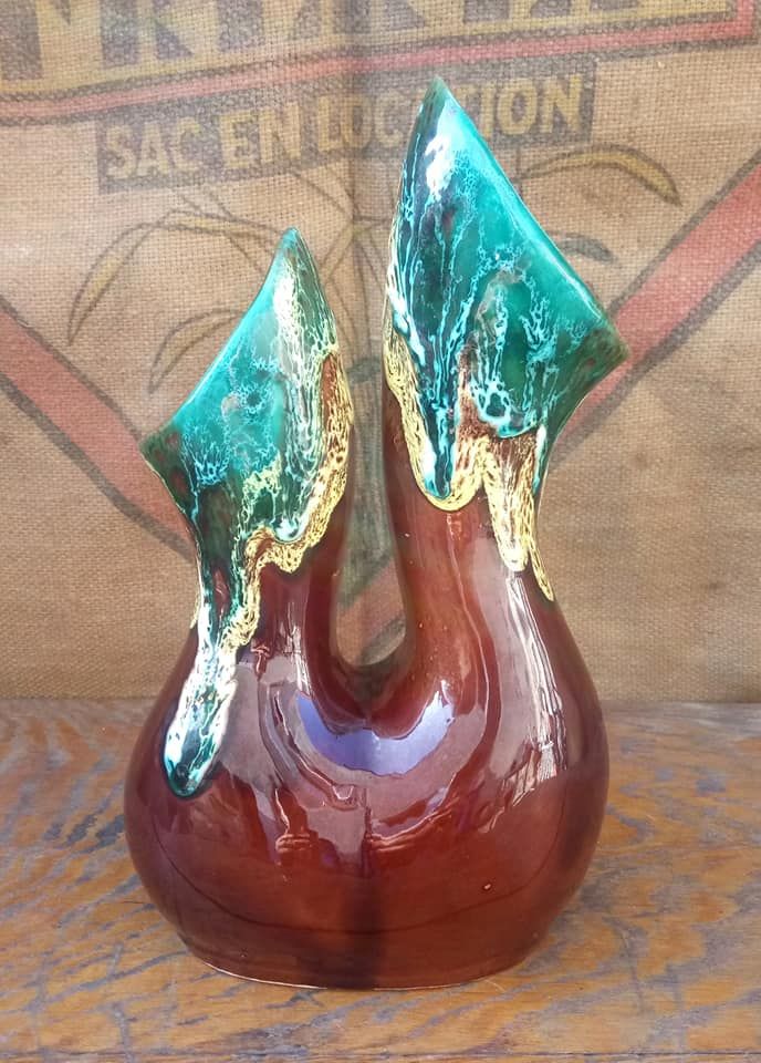Joli vase à deux cols en céramique