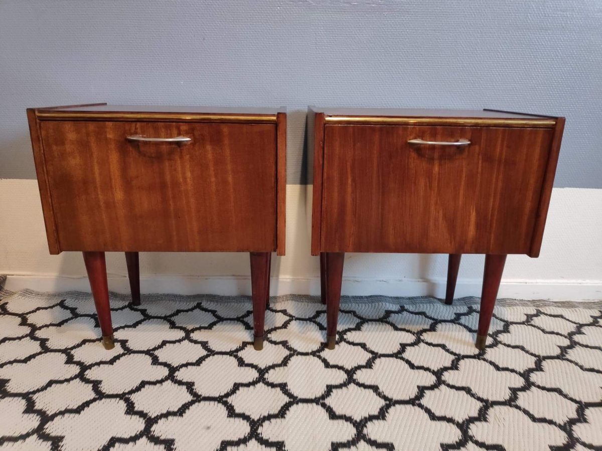 paire de chevets de marque SEMB des années 60 sur pieds fuselés avec porte