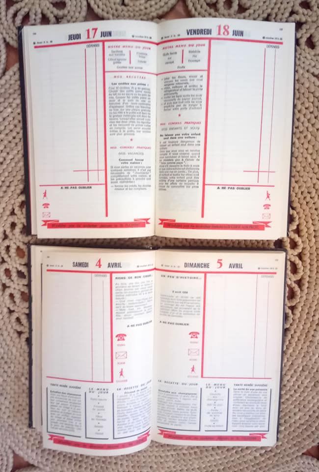 Sympathique à feuilleter avec leurs nombreux conseils pratiques pour la femme des années 60 : vos enfants et vous, votre maison, votre santé, vos vacances, vos recettes, vos voyages, vos recettes, le savoir vivre, un peu d'histoire ...