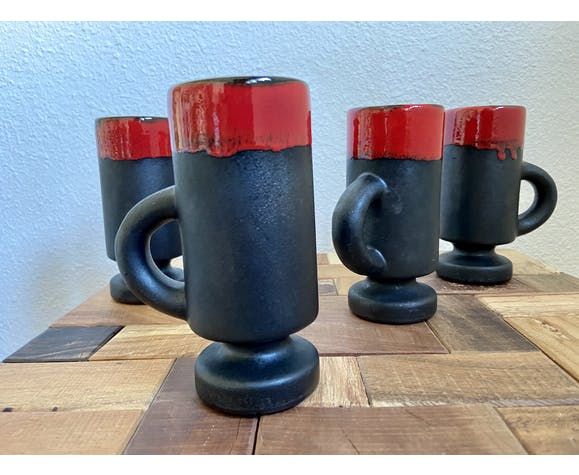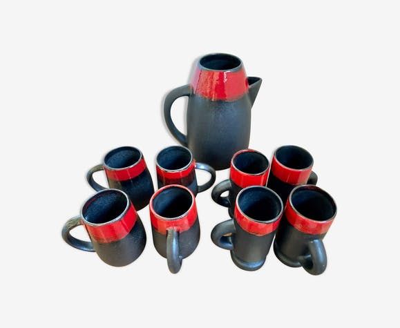 Belgique - 1965-1974 - céramique. Des articles: 9. Objet: set vintage mugs et jug. Matériel: céramique. Période estimée: 1965-1974. Pays d’origine: belgique. Condition: excellent état - à peine utilisé avec des signes minimes de vieillissement - l’usure. Ensemble de 8 tasses vintage et une cruche. Noir anthracite - rouge glacé. Dimensions: Hauteur des tasses: 12 cm - 14 cm. Hauteur de la cruche: 32.5 cm.