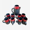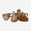 Très beau service à café vintage des années 60 en grès composé d'une cafetière, d'un pot à lait, de 2 lots de 2 tasses de formes différentes accompagnées de leurs soucoupes.