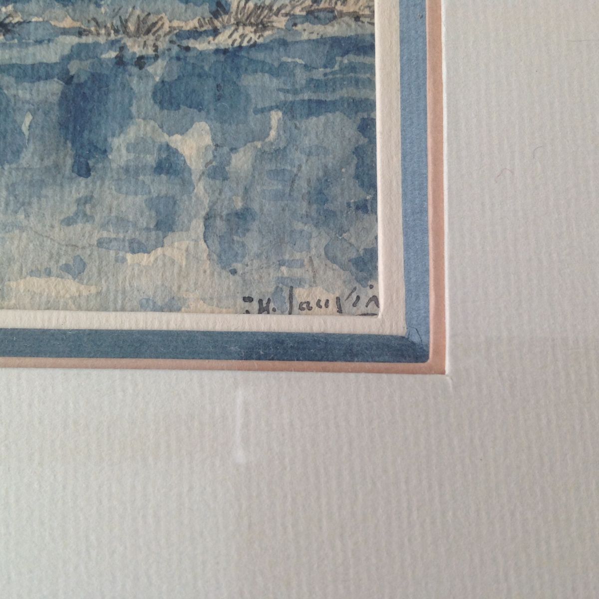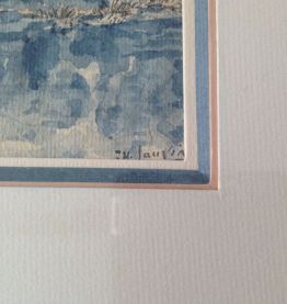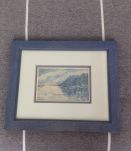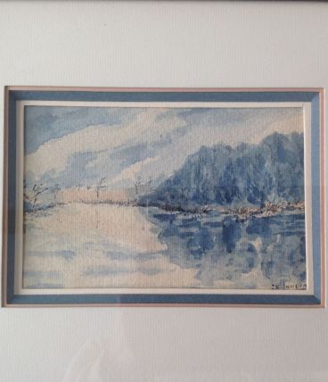 Jolie aquarelle sur papier Ingres, élégant passe partout, cadre en bois du même bleu.