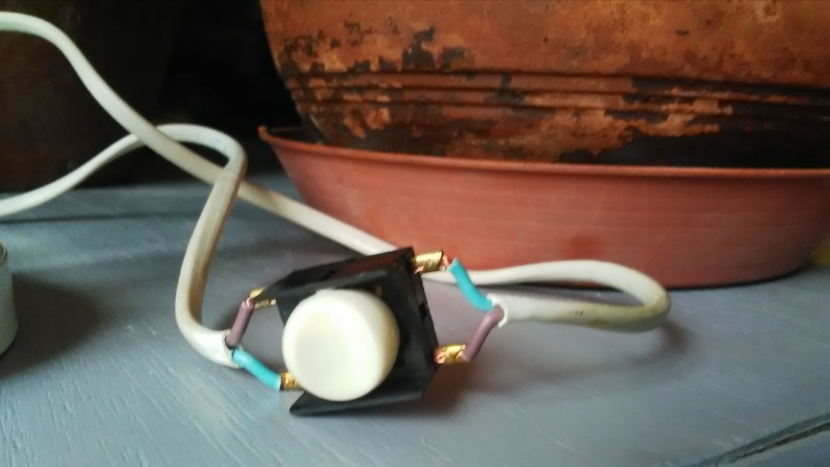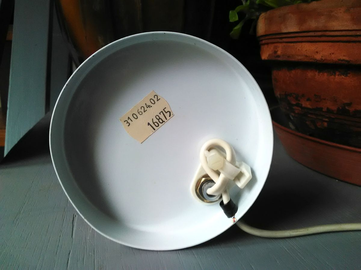 Il manque l'ampoule. En effet initialement, cette lampe de chevet n'était pas ornée d'un abat jour mais d'une grosse ampoule ronde.