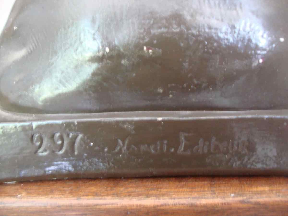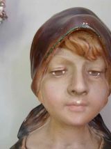 Buste de très jolie fillette réalisé en plâtre polychrome datant des années 1920 portant le numéro « 297 Nardi Editeur » gravé au verso. Quelques légers éclats de peinture n’enlèvent rien à son charme.
