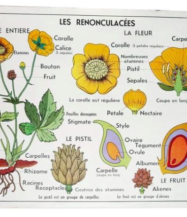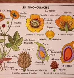 Affiche scolaire MDI – la giroflée, les crucifères & les renonculacées -1960.