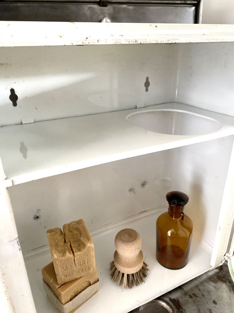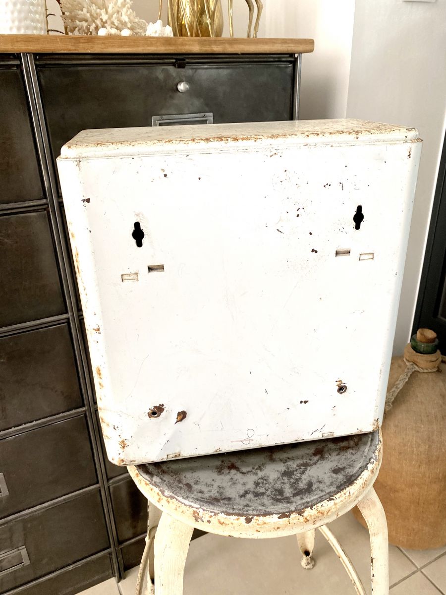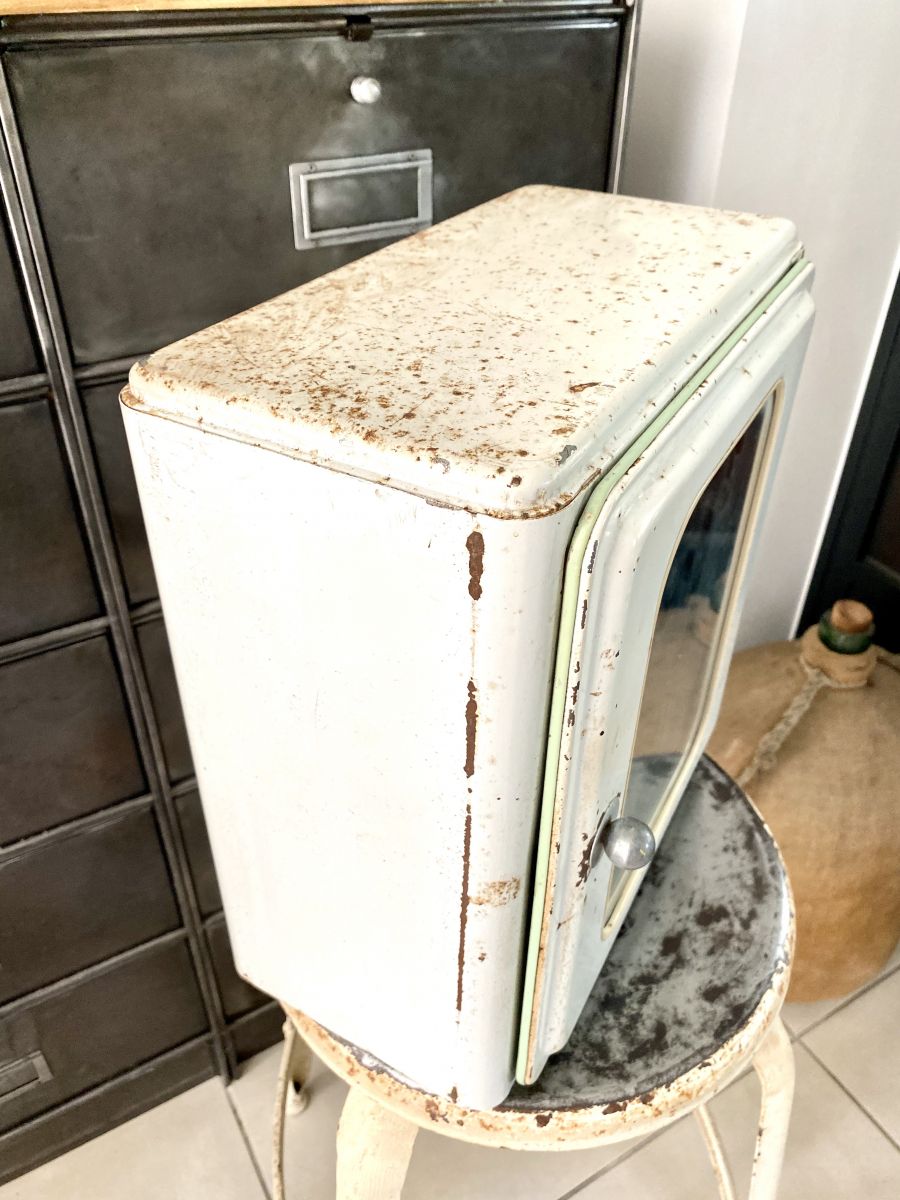 Armoire à pharmacie en tôle datant des années 1950 avec miroir central ( 18 * 25 cm ).