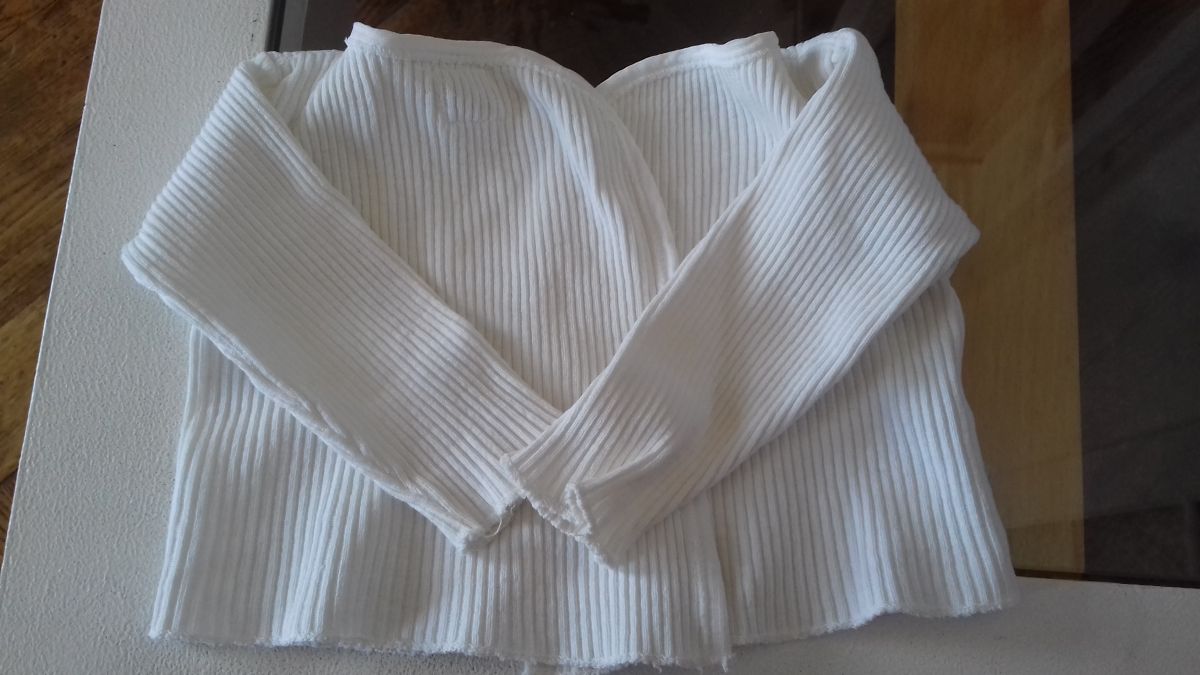 2 petits gilets nouveau né identiques, à manches longues, blancs, sans fermeture. Pour petits gabarits.