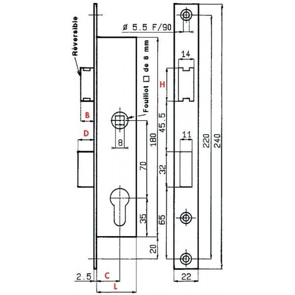 Conditionnement : 1 Serrure dans son emballage d'origine, sans cylindre, sans vis, sans gâche.