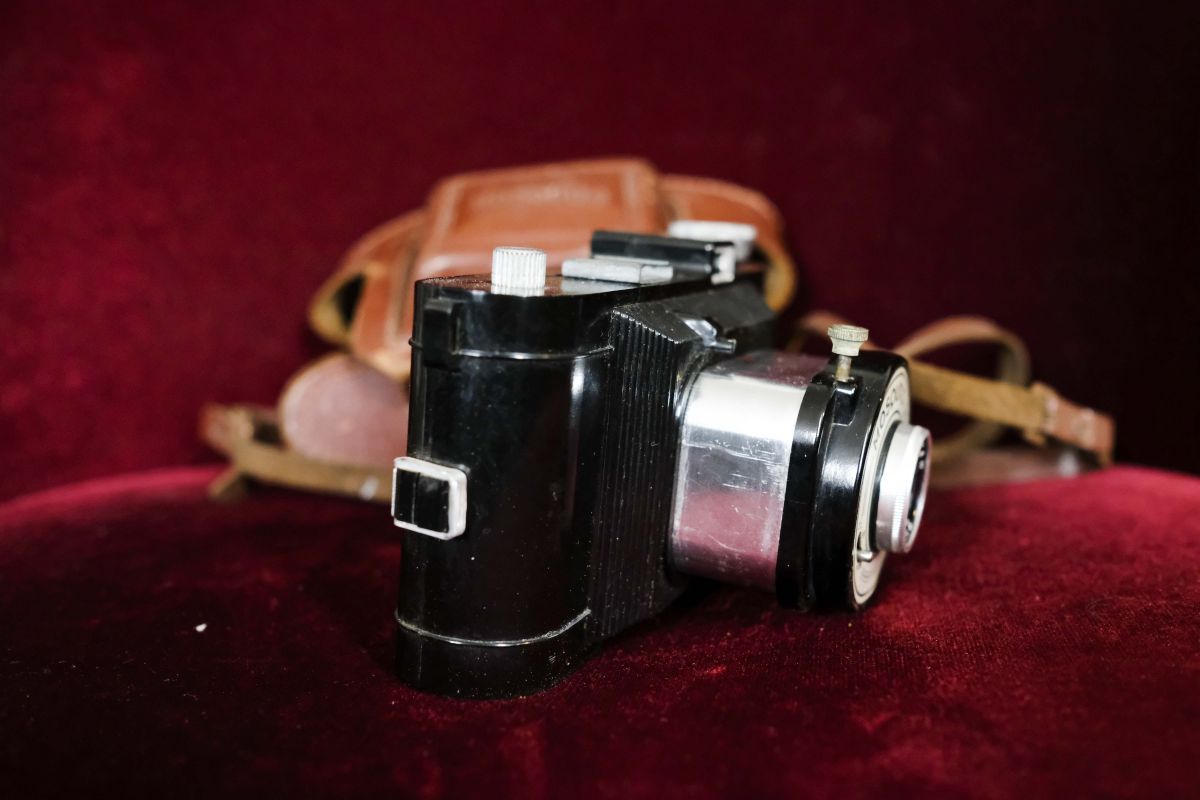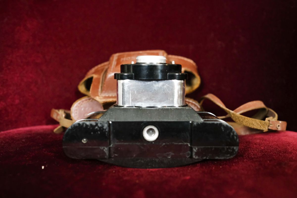 Il est en bonne état, vendu avec sa housse ! Un petit souci de mécanisme sur l'obturateur qui ne s'ouvre pas entièrement, mais probablement facilement réparable, c'est un appareil extrêmement logique et mécanique.