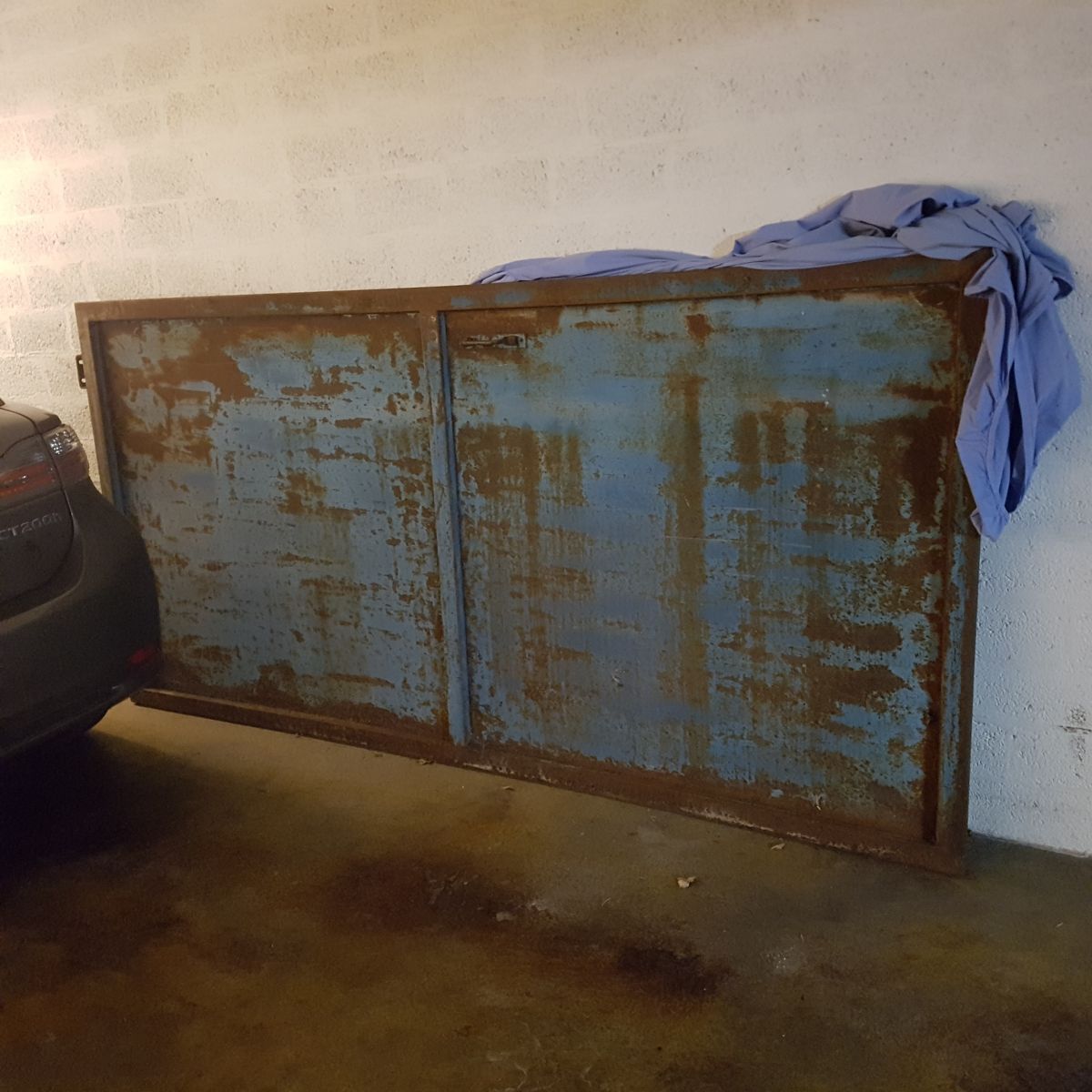 Porte d atelier vintage bleu rouille