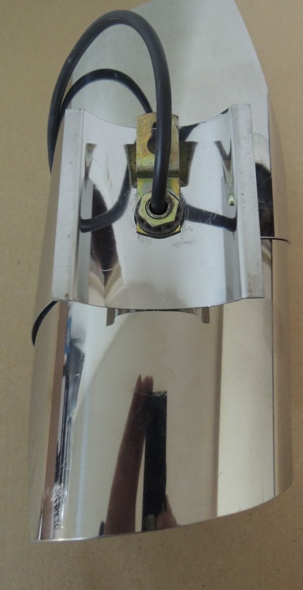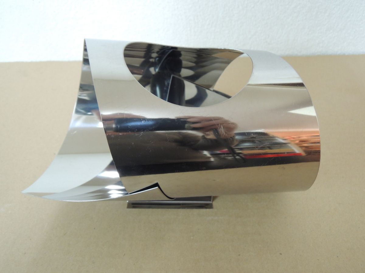 Applique en métal chromé de style Space Age, année 60 -70, douille à vis type E27, électricité révisée (câble neuf). Bon état général avec traces d'usure normale (microrayures).