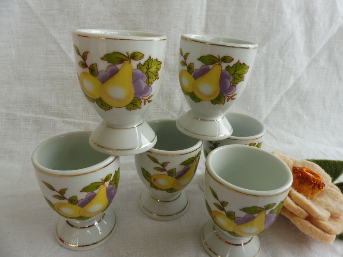 Lot 6 coquetiers décor doré et fruits