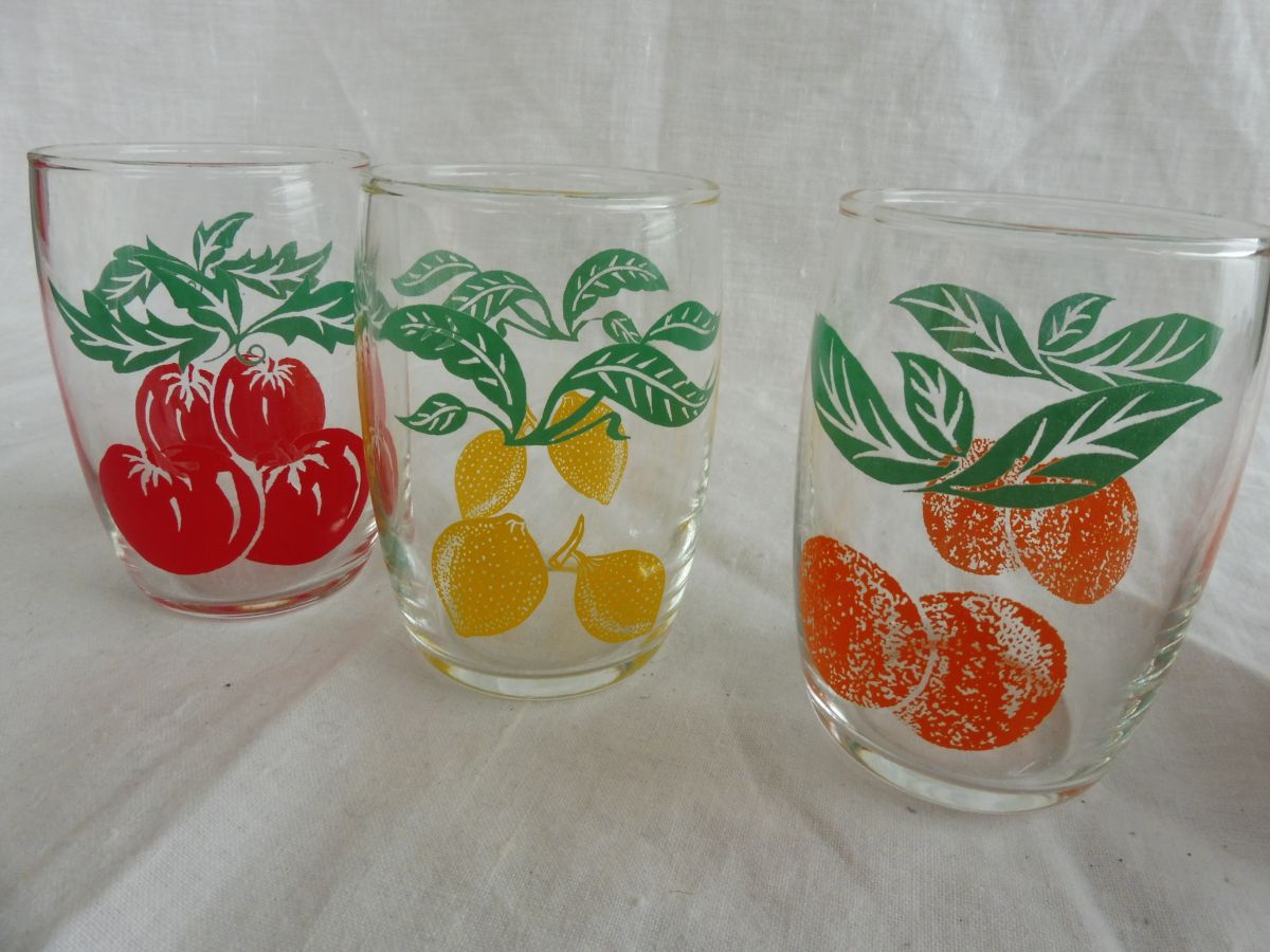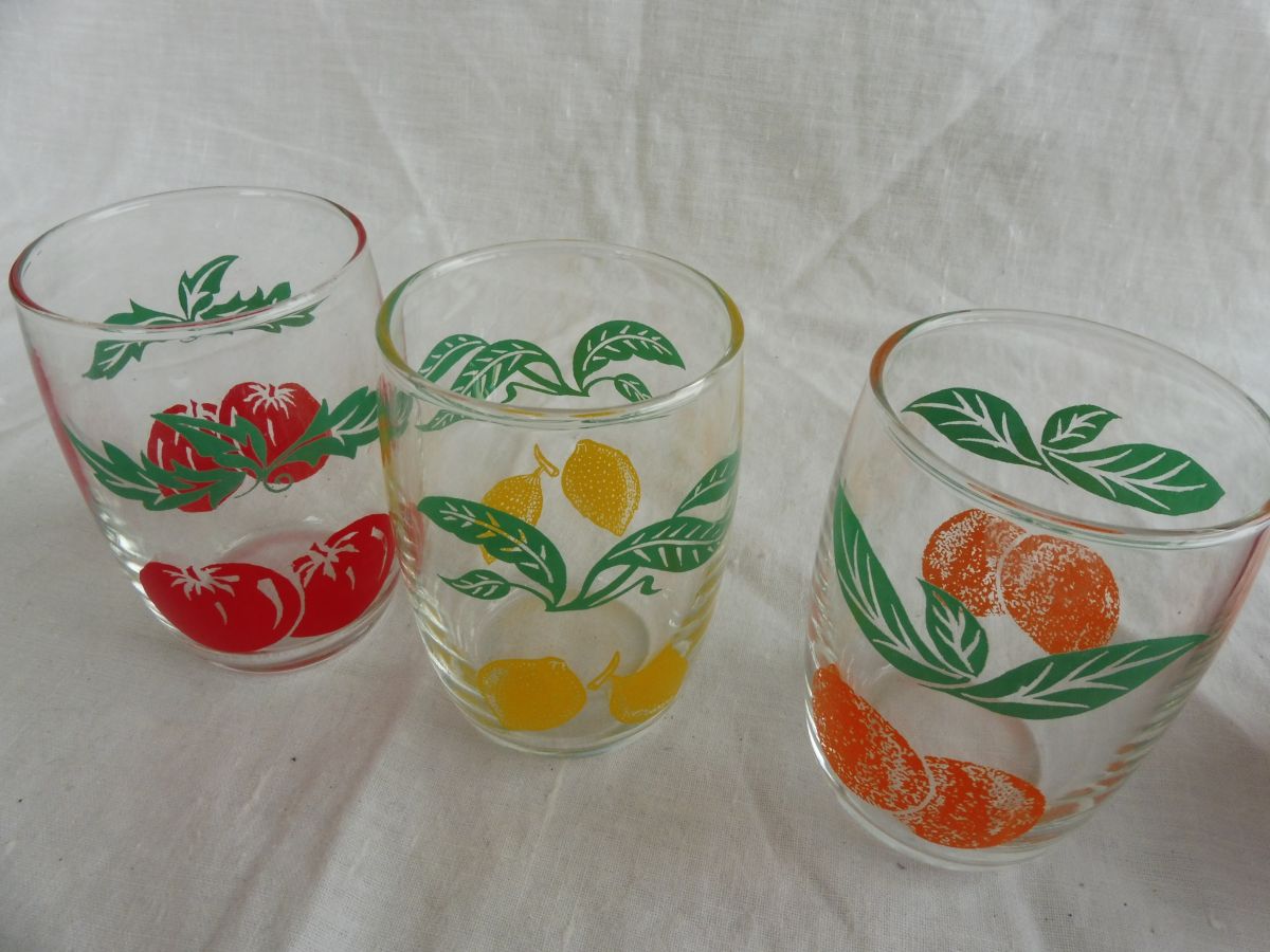 Série 3 verres vintage décors fruits