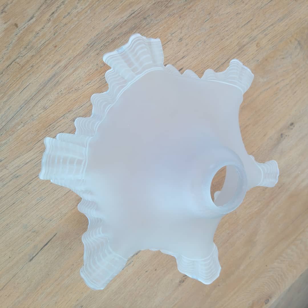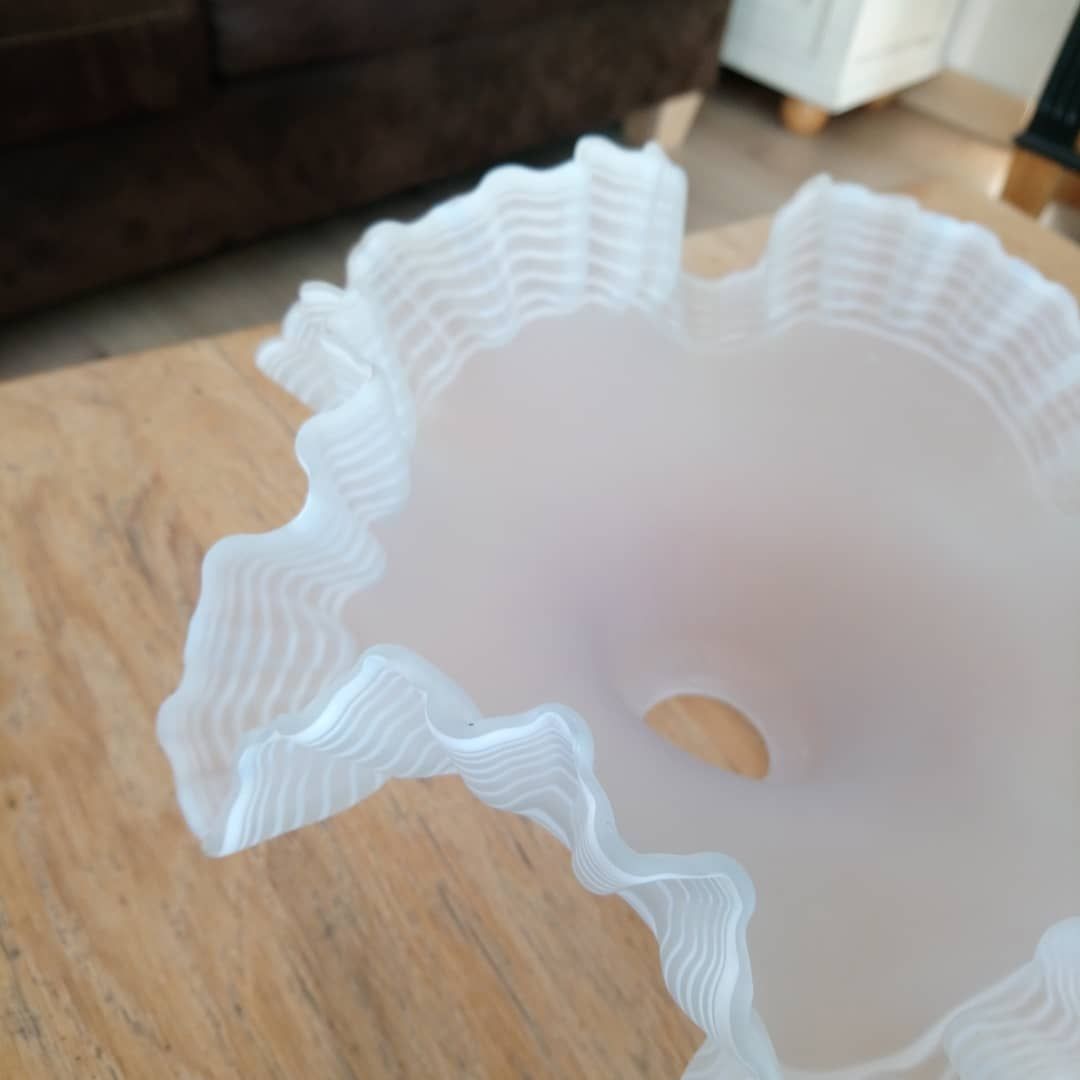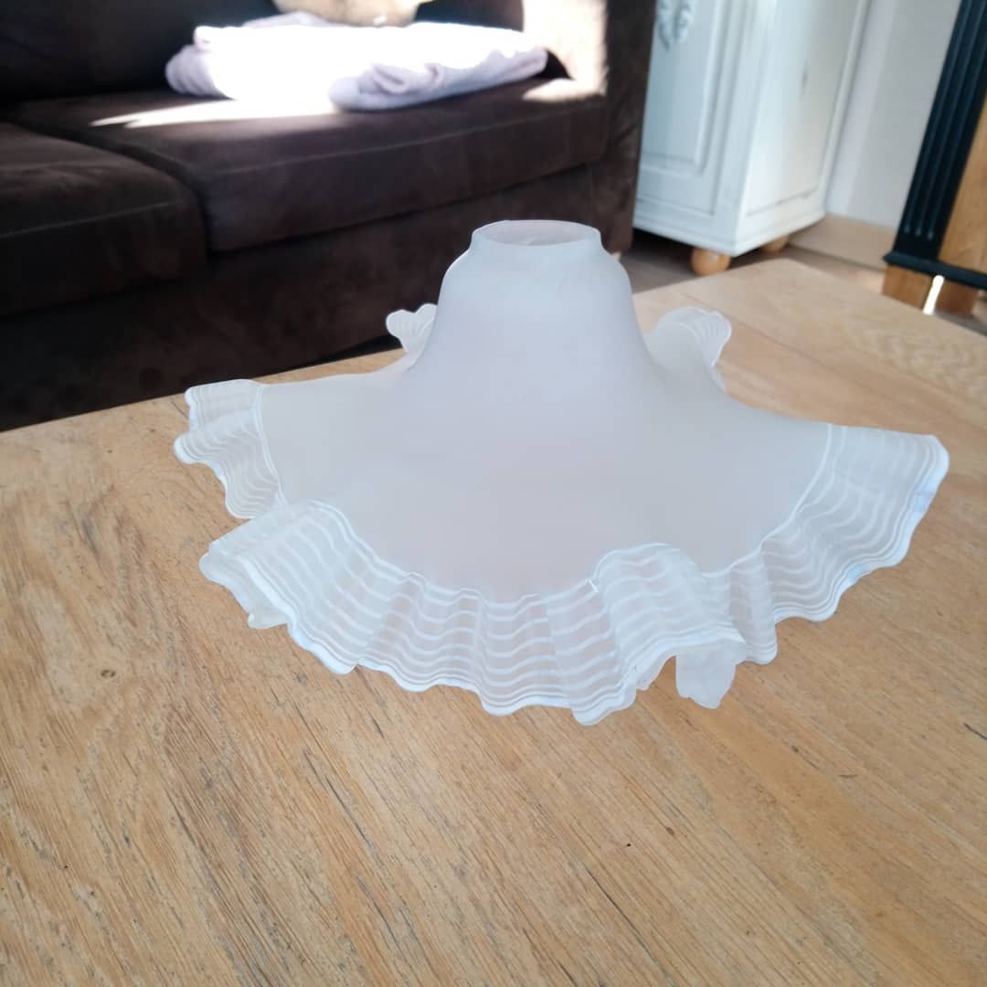 Jolie suspension en opaline plissée à bordure blanche. Pour une déco campagne chic.