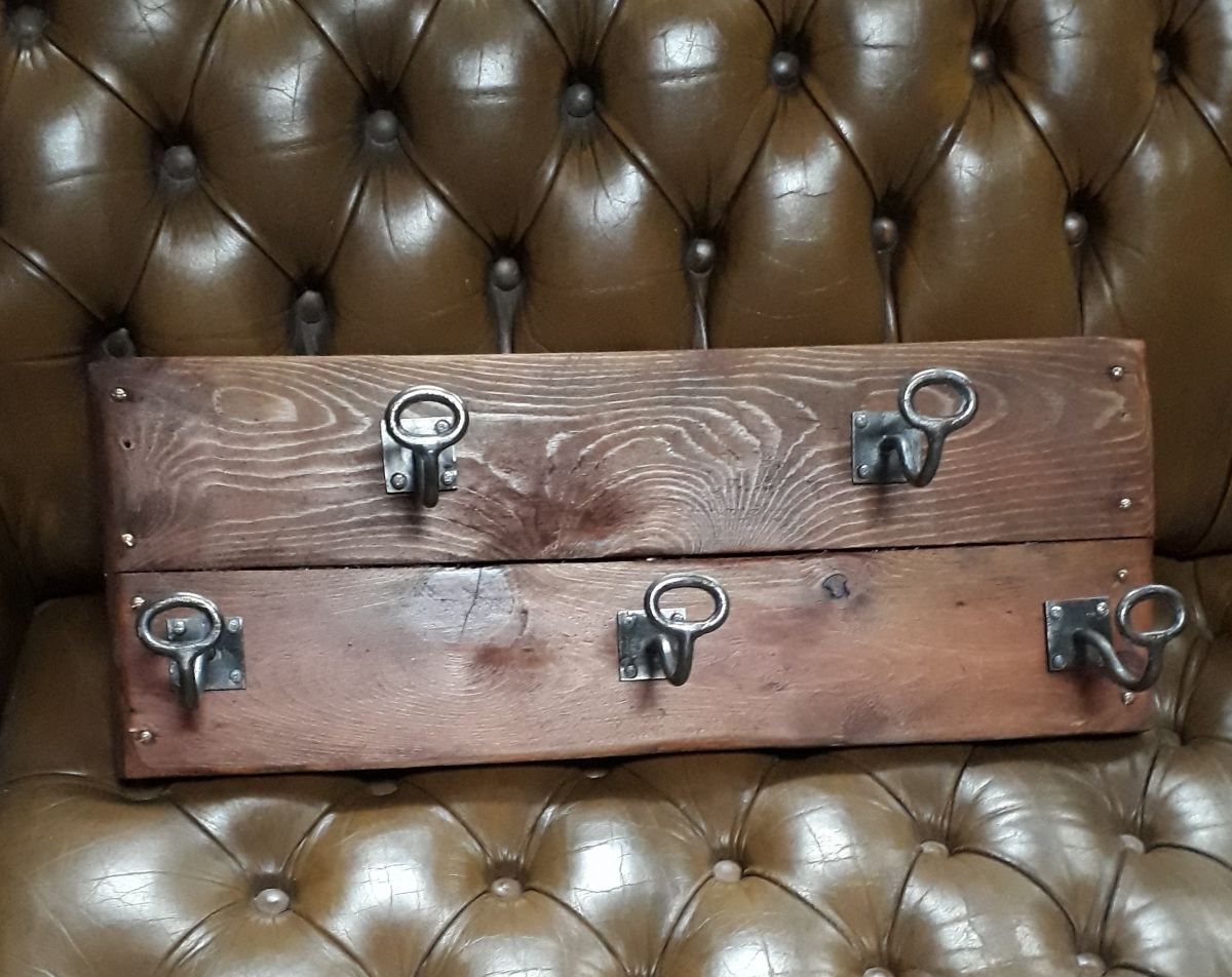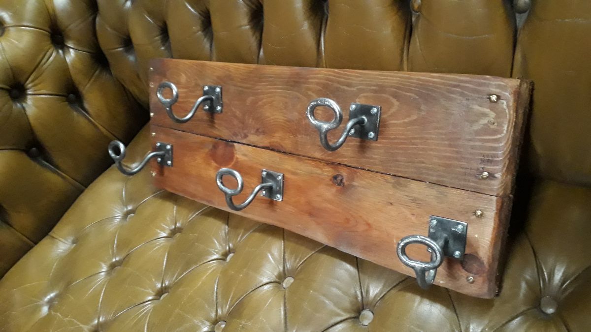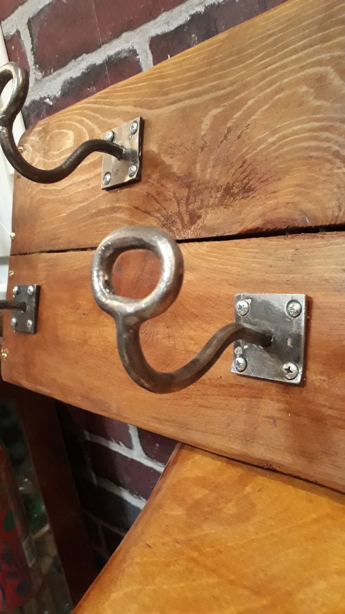 portemanteau mural 1960 patere acier brut sur bois (sapin) rustique