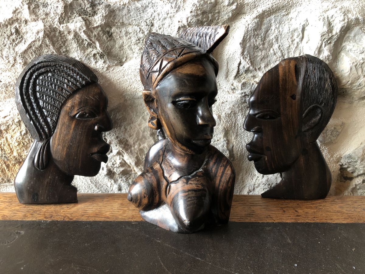 lot de 3 statuettes africaines en bois dur et très lourd.