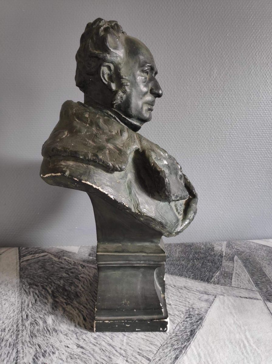 ancien grand buste en plâtre de Charles Frédéric Kuhlmann, chimiste, chercheur et industriel français