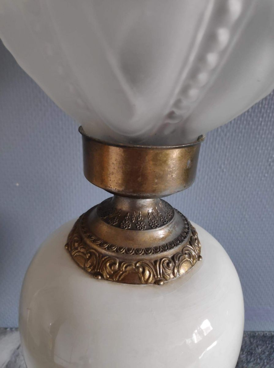 lampe ancienne, pied en céramique blanche avec fleurs et laiton,