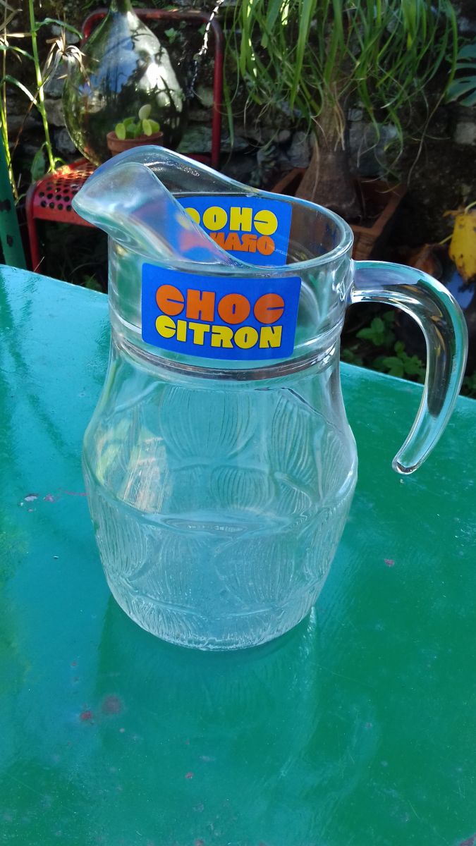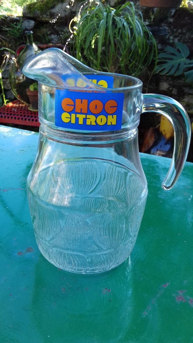 Vintage années 80, carafe ou pichet publicitaire CHOC CITRON. Propre et bon état.