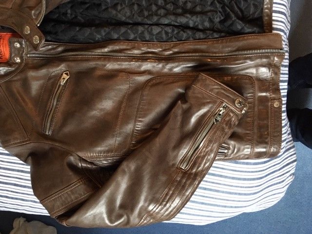 Blouson Redskin vintage type motard en mouton. Très bon état du cuir. Taille L mais correspond plus à du M.