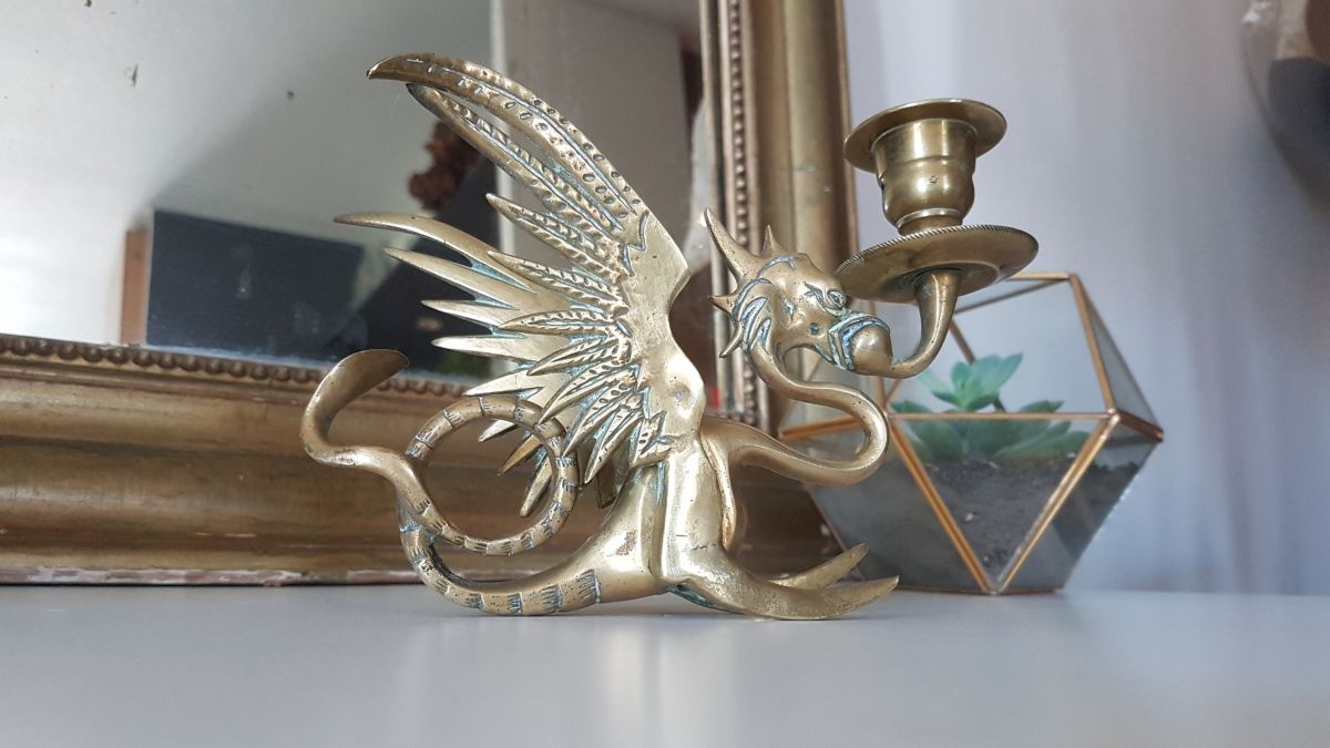 Bougeoire Dragon / Griffon / bougie / Déco de Table/ or / La