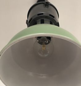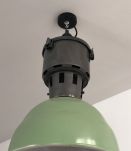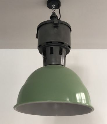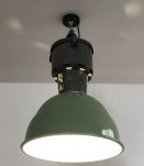 Métal. Couleur vert-olive. Blanc couleur intérieur. Vendu avec ampoule.