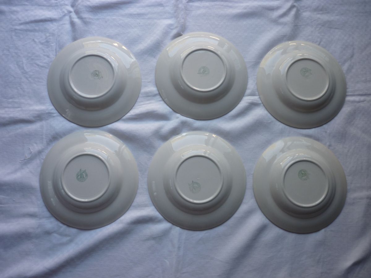 Lot de 6 assiettes en faience de Moulin des Loups Orchies a decor de feuilles:diametre 23cms,hauteur 3,5cms,bon etat