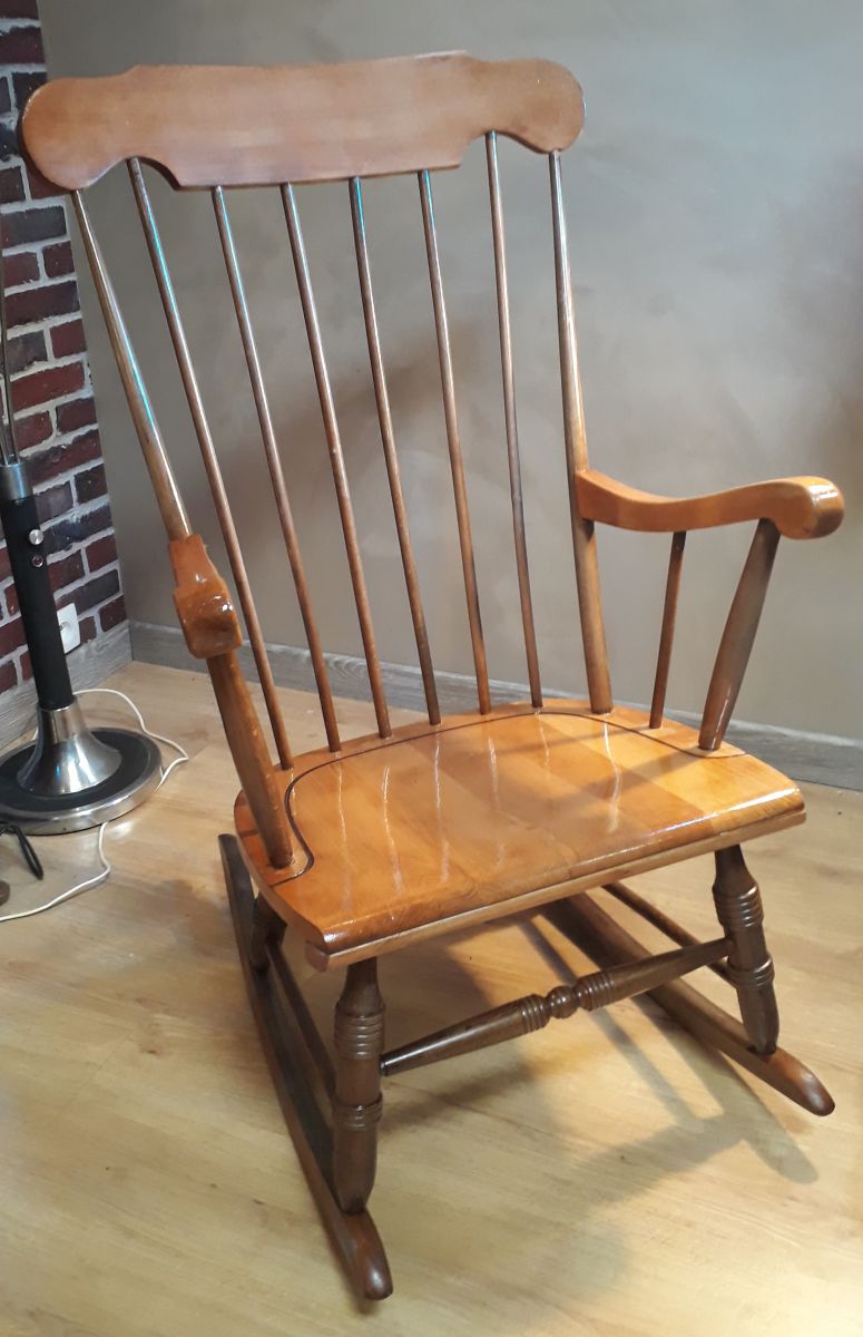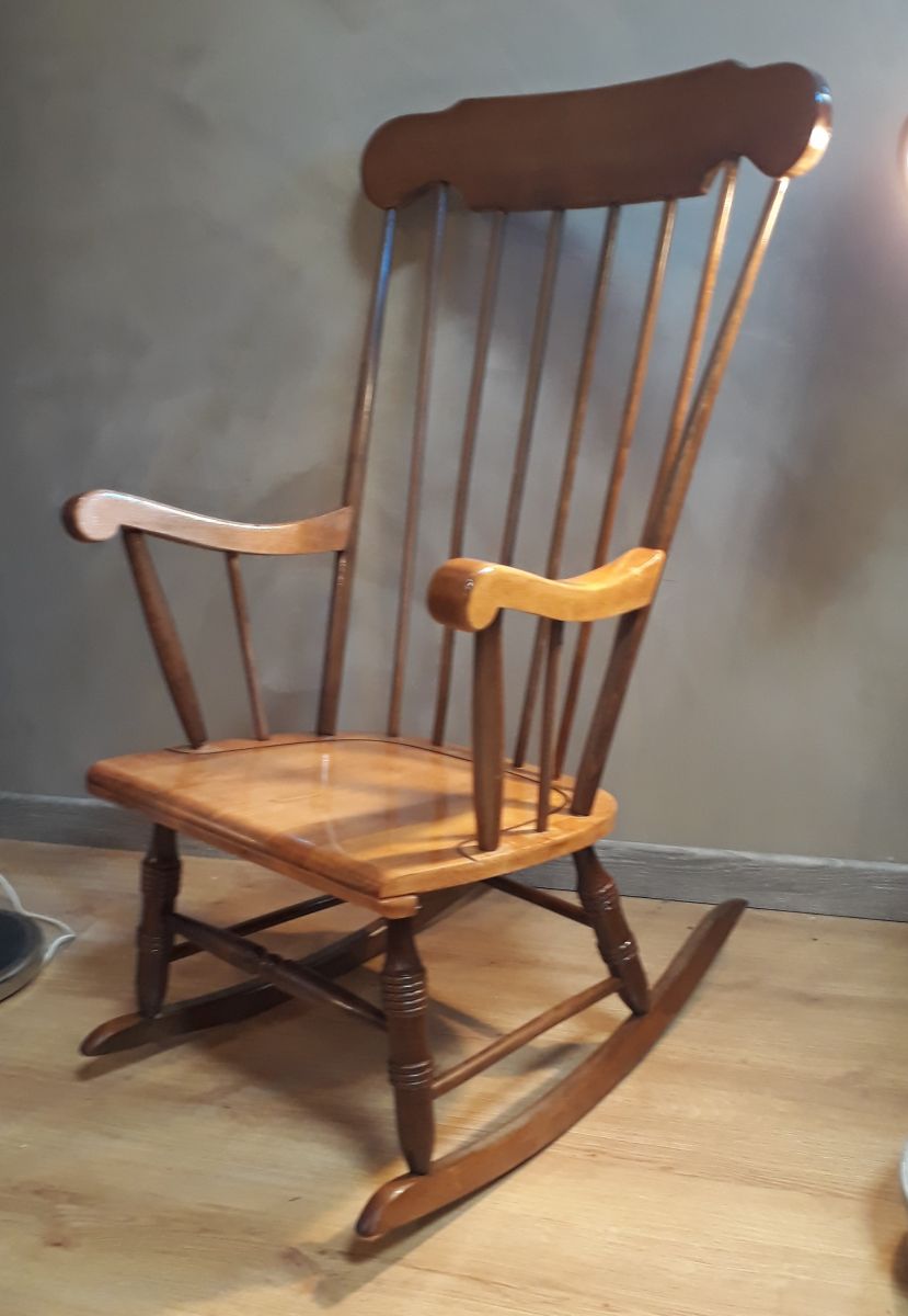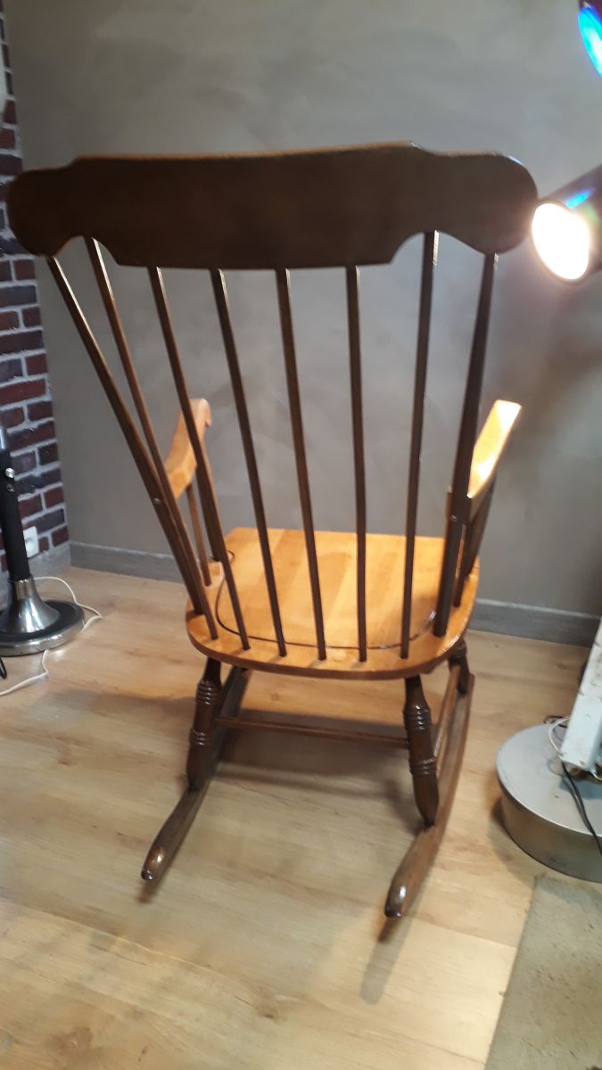 rocking chaire brun et bois naturel teintes suptiles 1970s