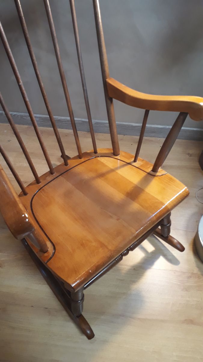 rocking chaire brun et bois naturel teintes suptiles 1970s style scandinave assise 37cm 103x60 x 75