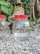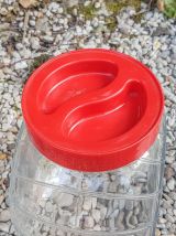 Bouchon à vise en plastique rouge et bocal multi-position.