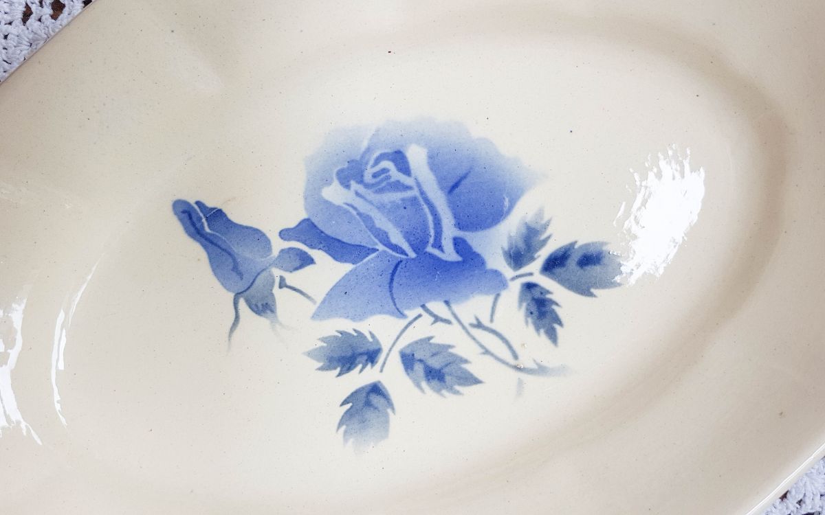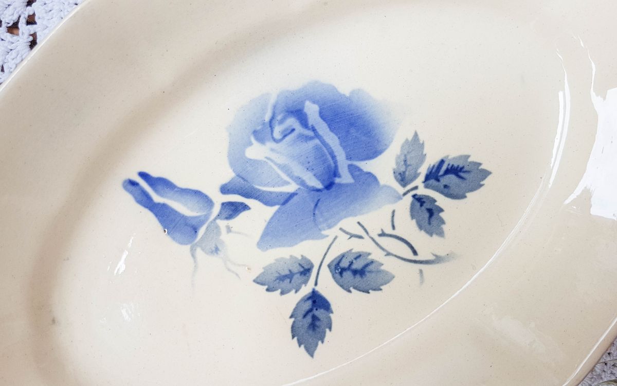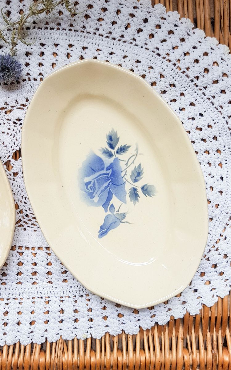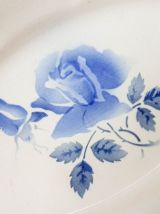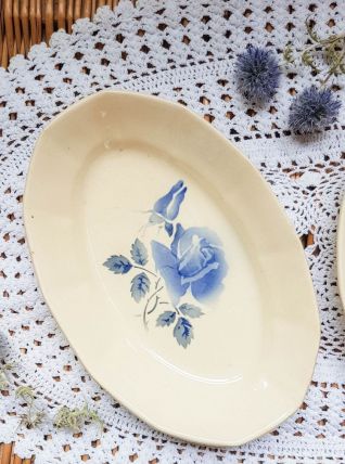 Ravier Plat oval Digoin Sarreguemines Rose bleu modèle Canne