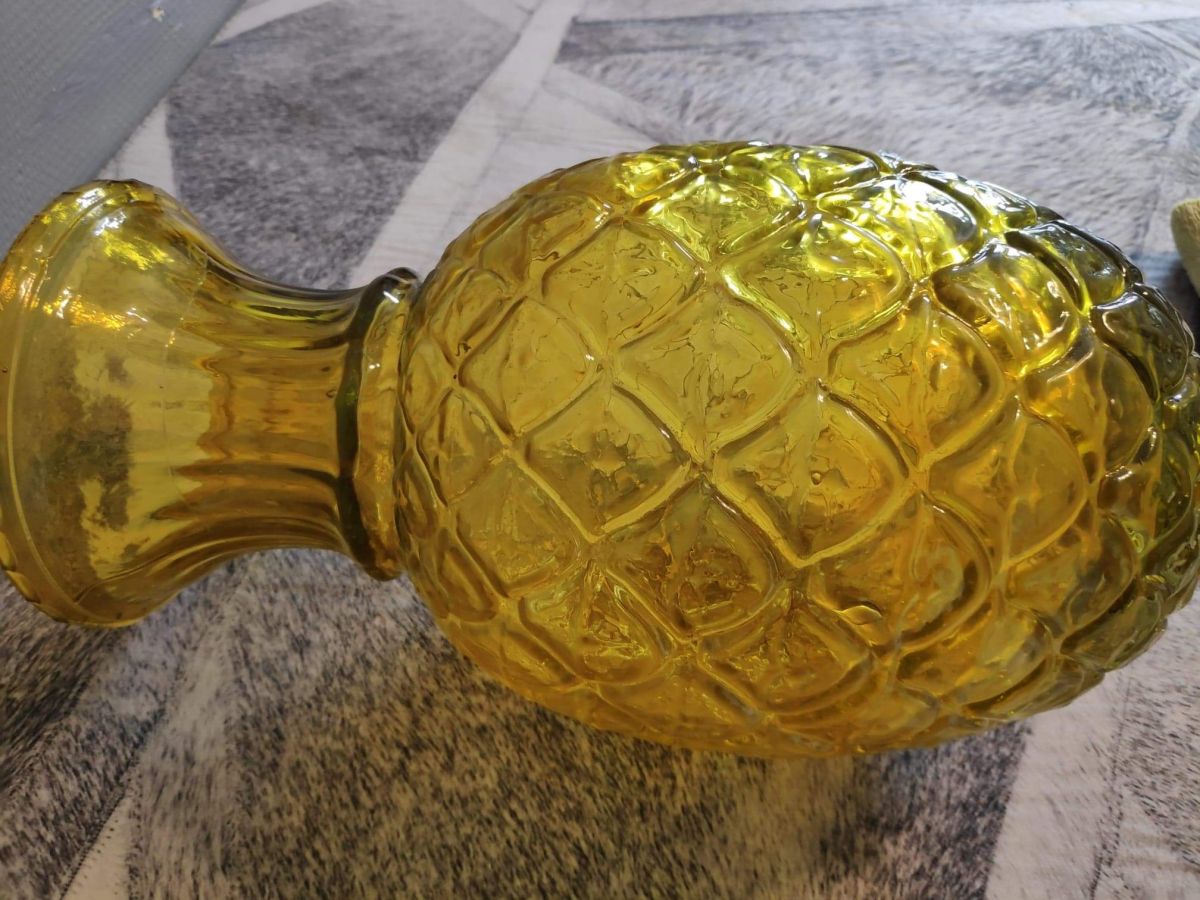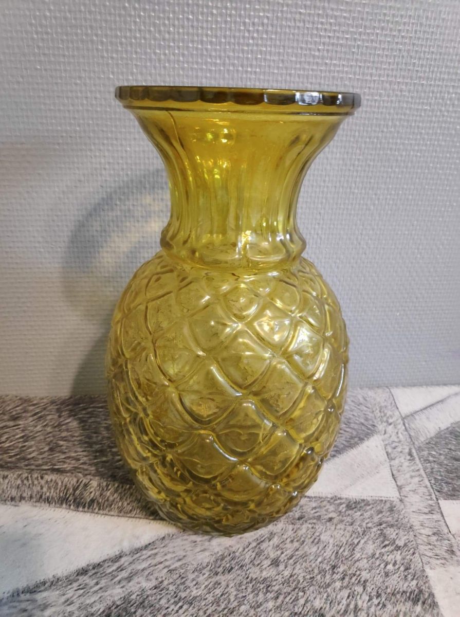 vase ananas en verre jaune orangé