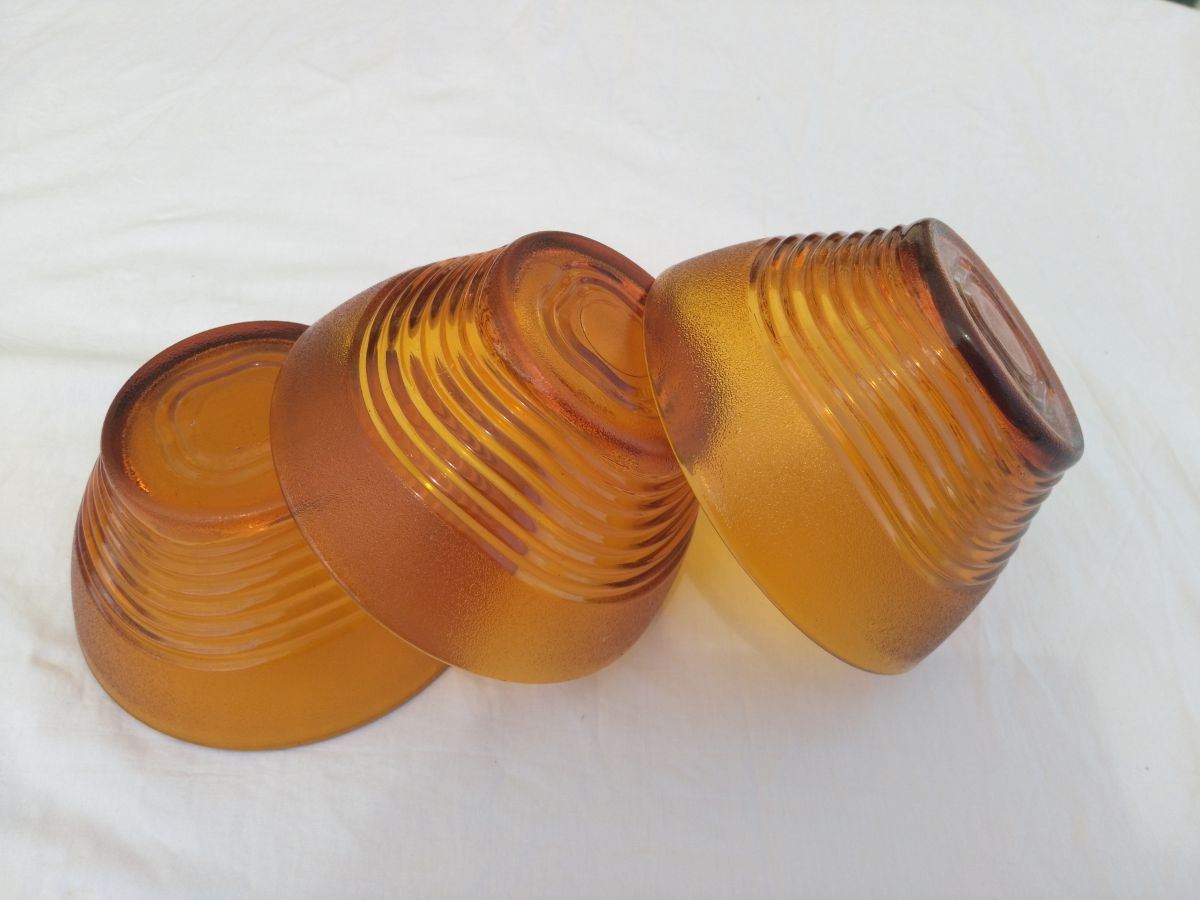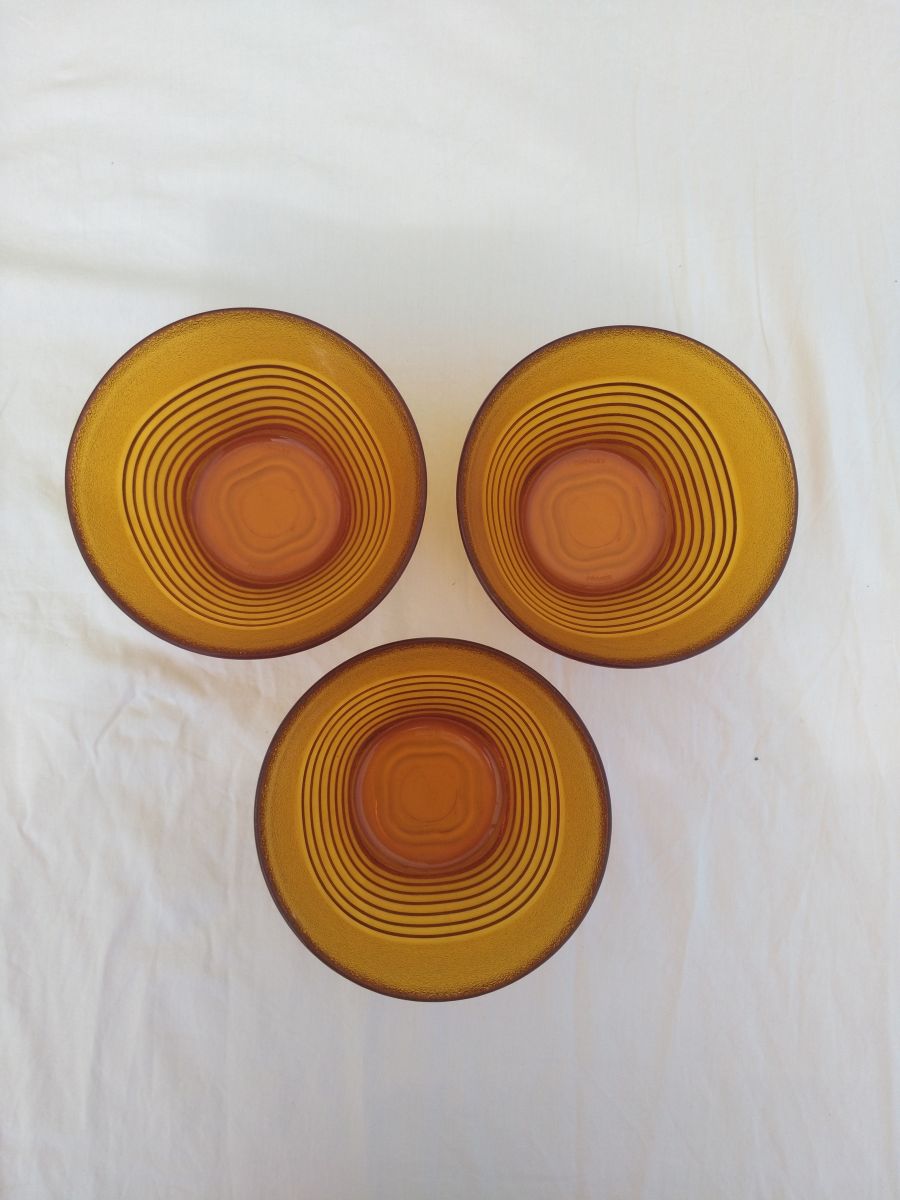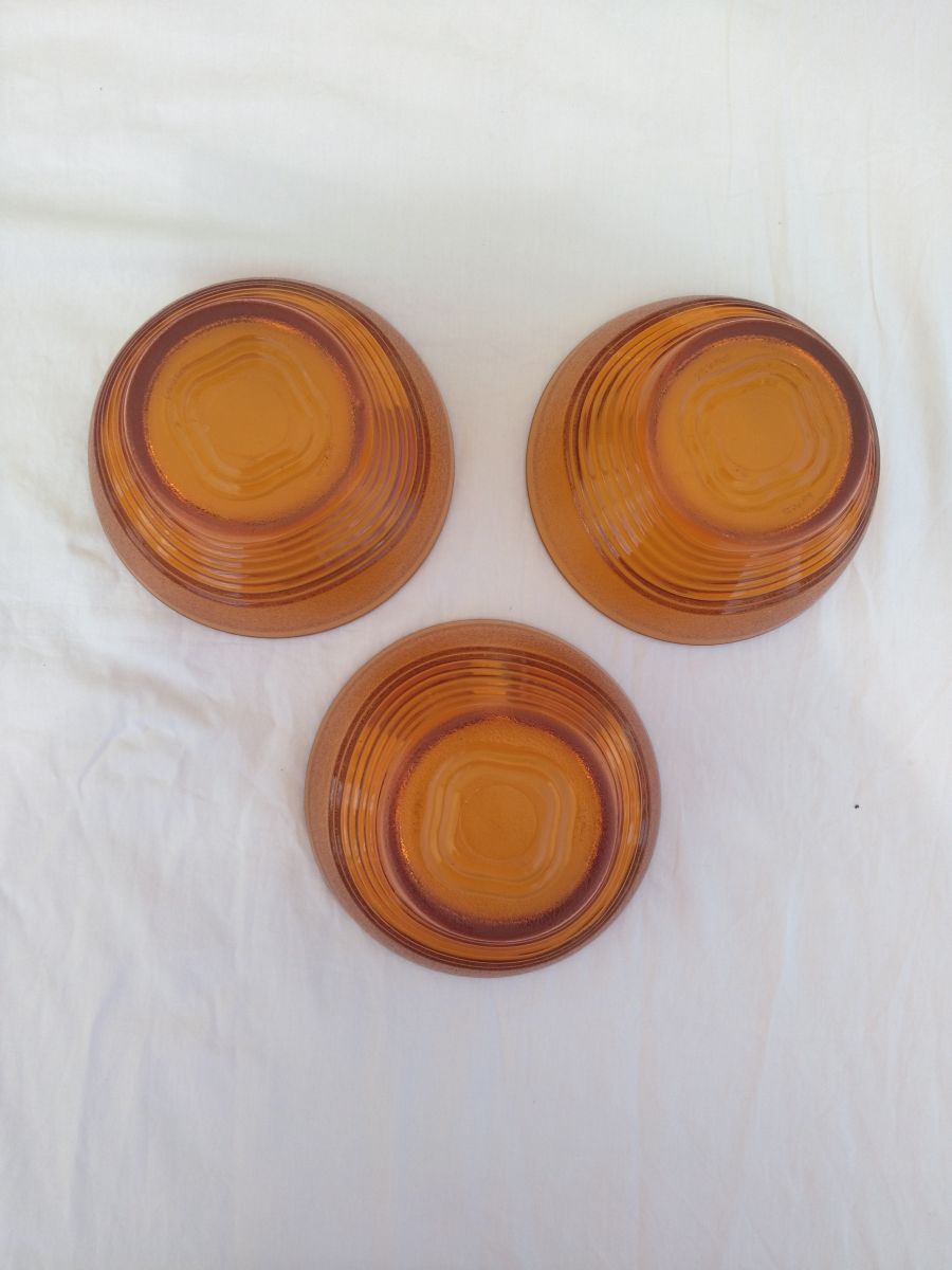 Lot de 3 bols Duralex , modèle vague , verre granite sur le haut, moulé partie basse