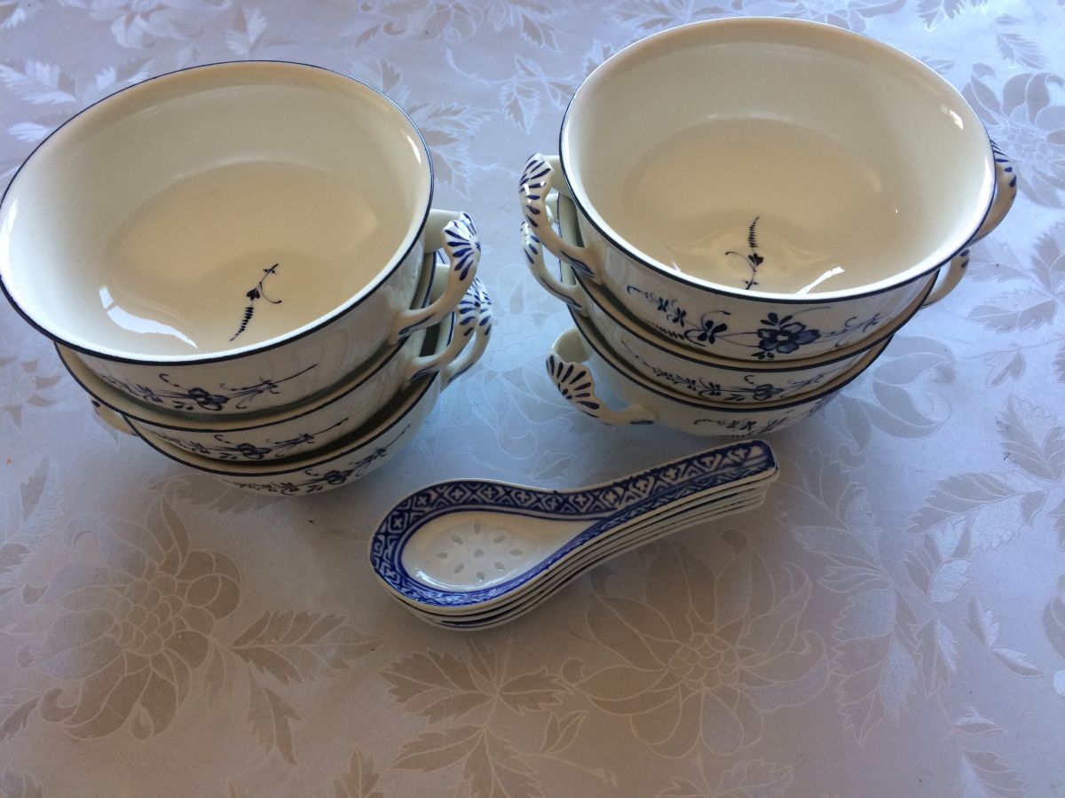 - 6 bols à soupe avec cuillère (une cuillère est légèrement ébréchée)