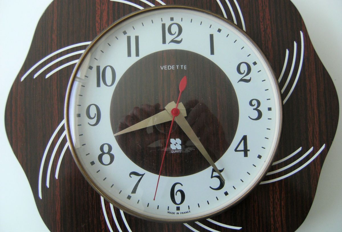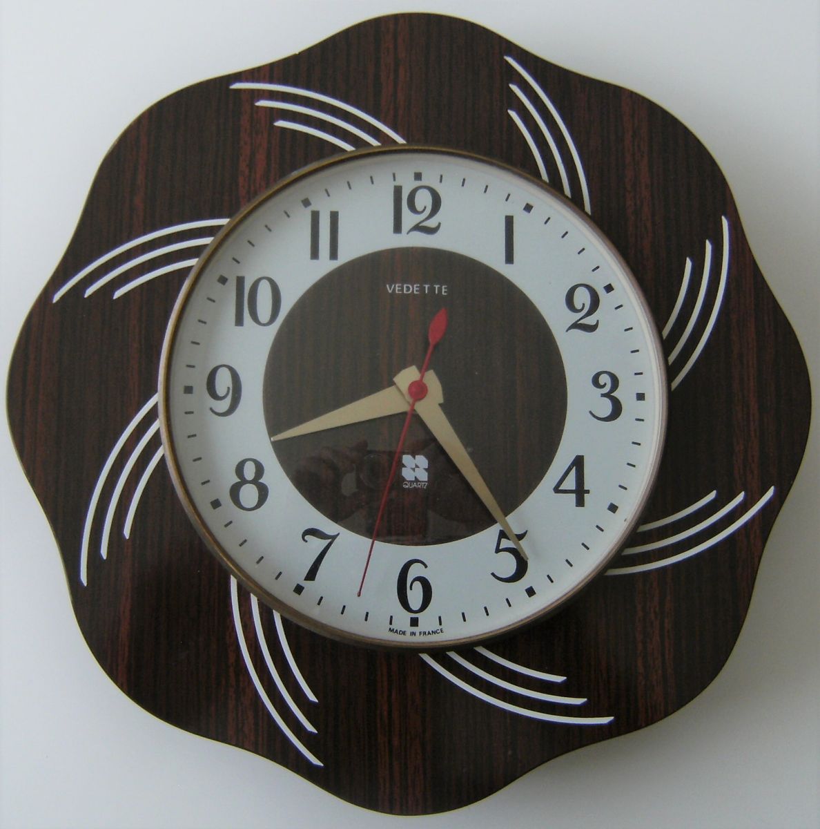 Horloge murale Vedette formica bois quartz fonctionne rosace