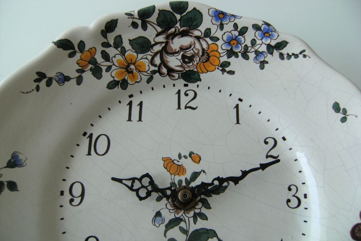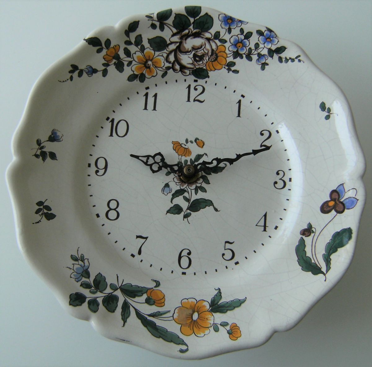 Horloge murale "BOUC CERAM" , céramique craquelée, motif floral . Chiffres arabes .