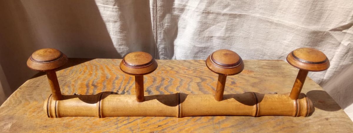 Ancien porte manteaux en bois façon bambou typique des années 50.