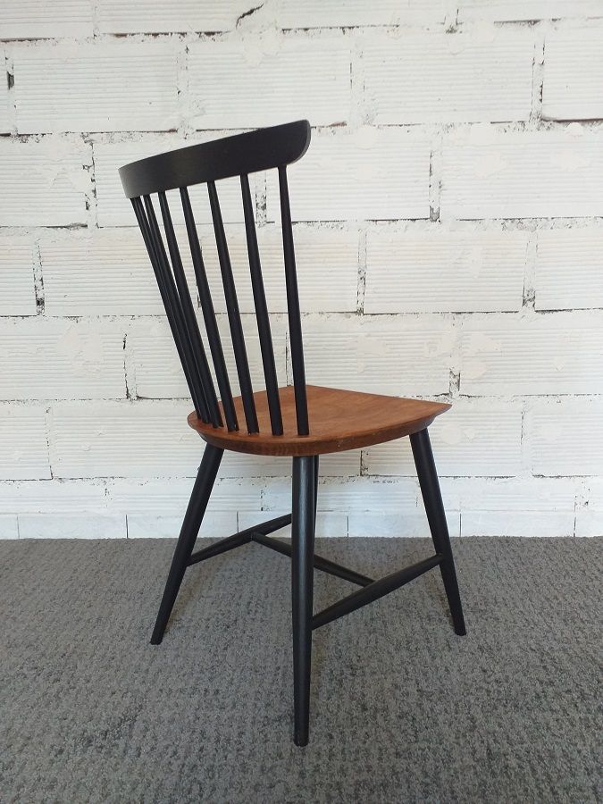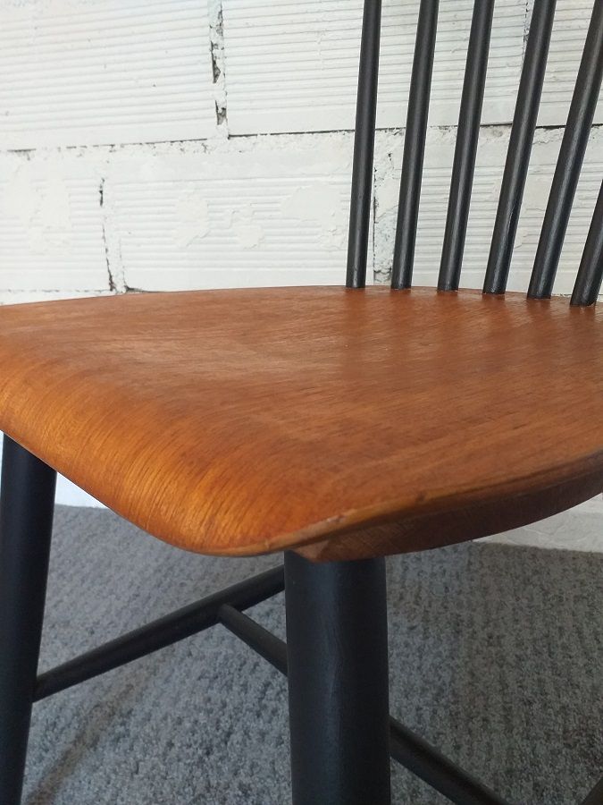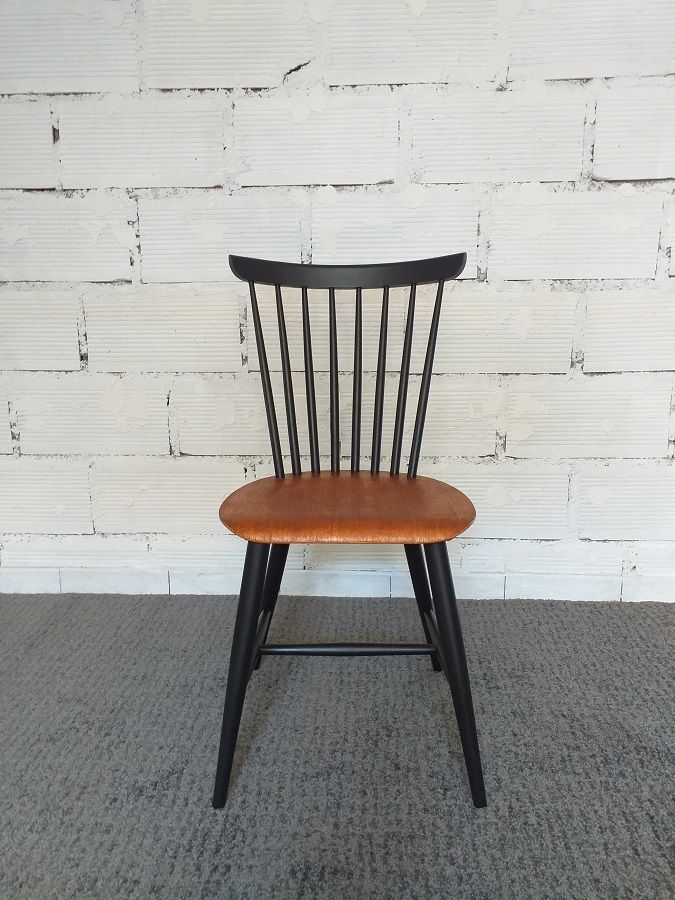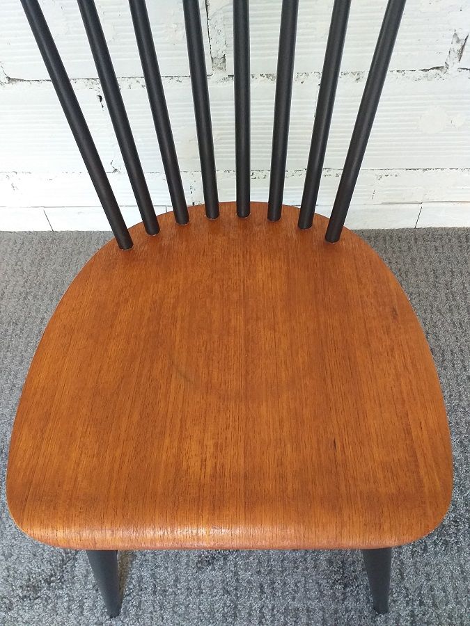 Chaise édition hollandaise dans le goût de Tapiovaara ou Pastoe. Très bon état. Assise en placage teck. Hauteur assise 46 cm.