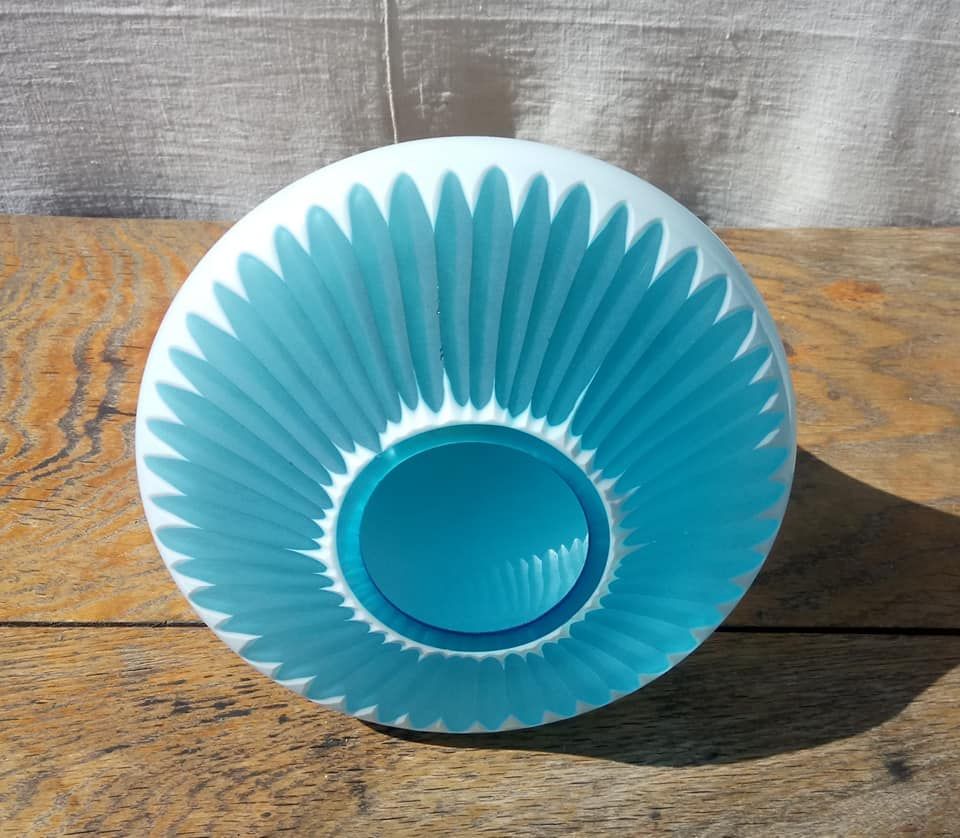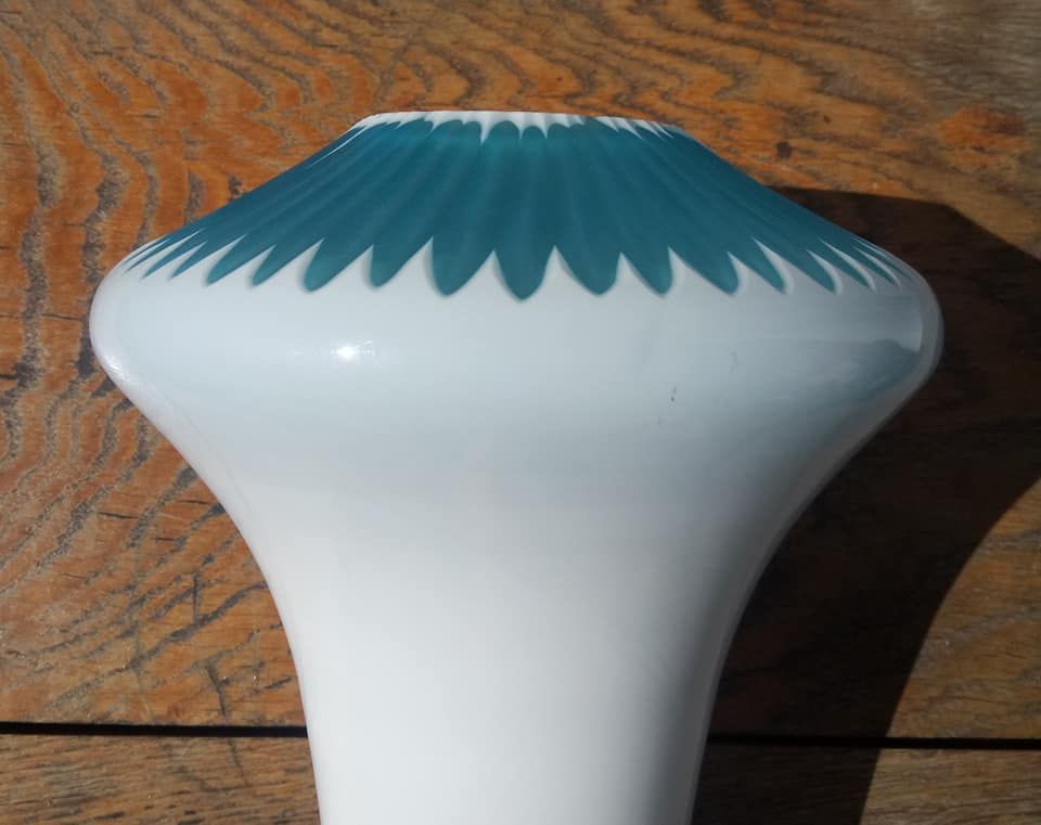 Joli vase en opaline blanche et verre bleu turquoise