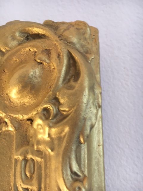 Quelques marques d’usure et de renovation (à peine visibles à l’oeil nu) aux 4 angles liées à l’âge et à l’usage. Aucune partie manquante.