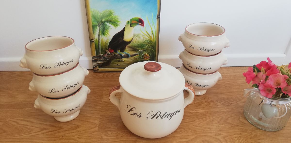 Soupière et ses 6 bols à potage