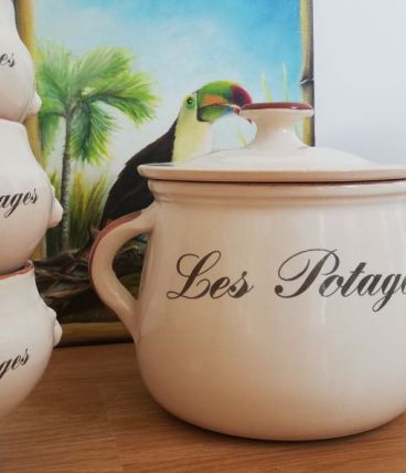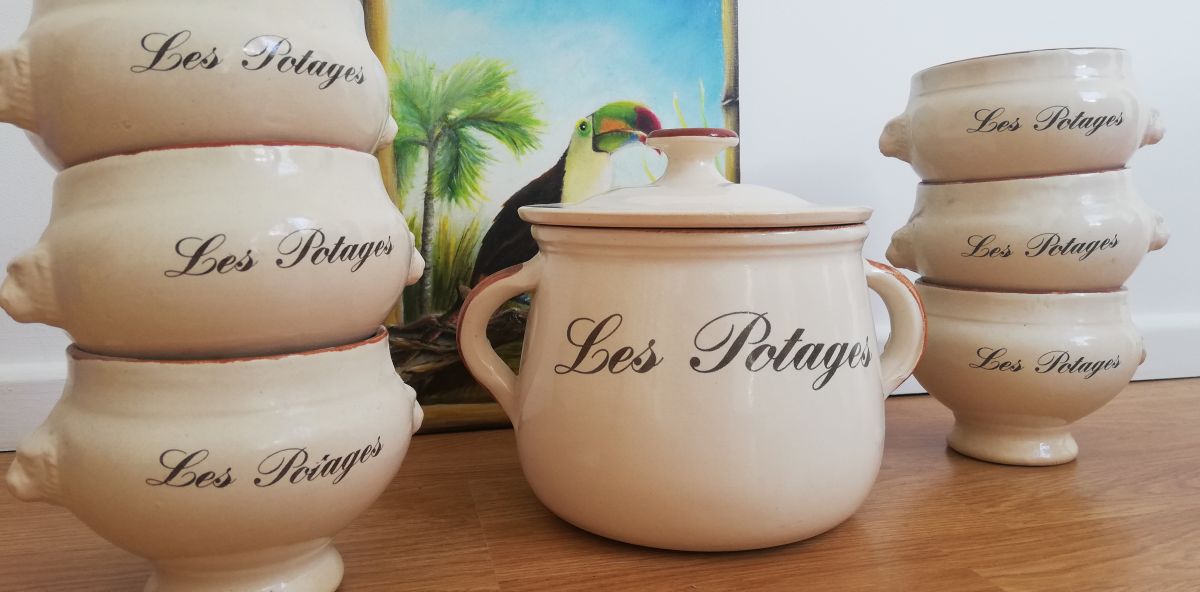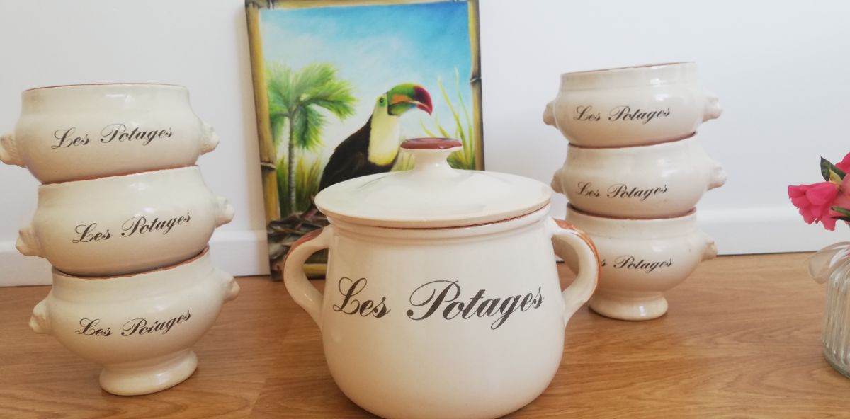 Soupière et ses 6 bols à potage vintage