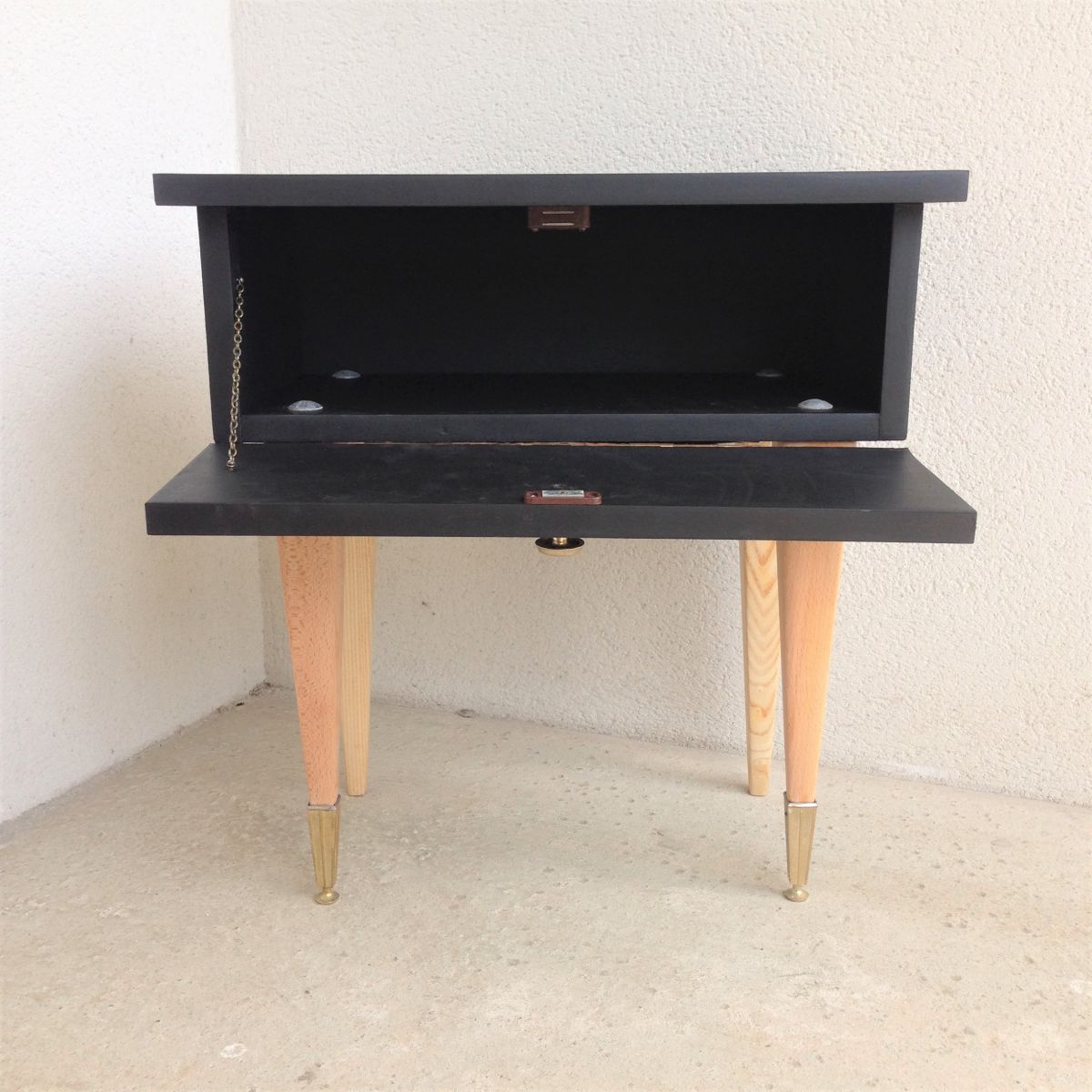 chevet vintage noir mat souligné d'or