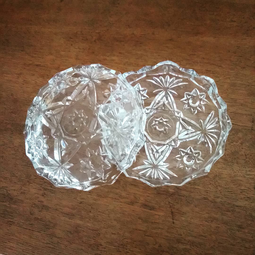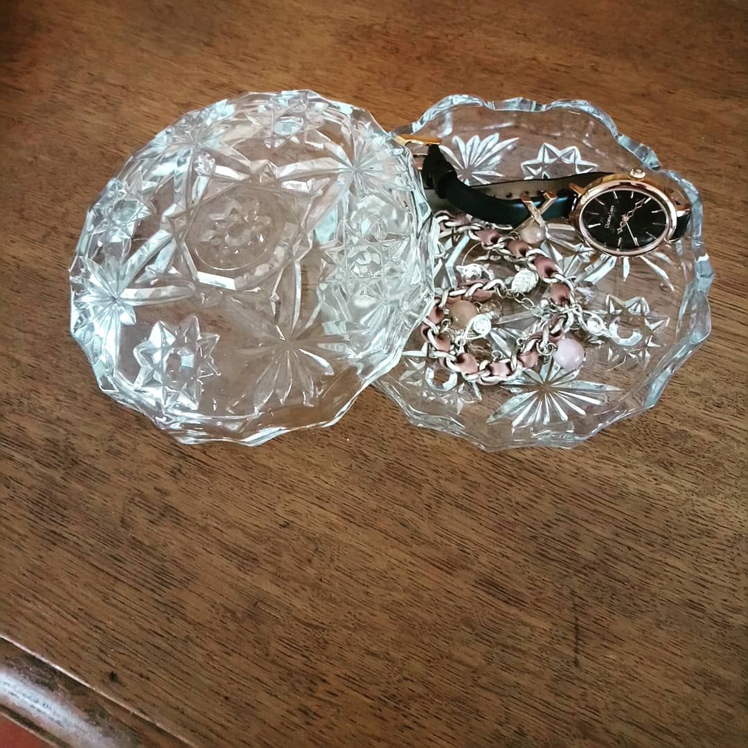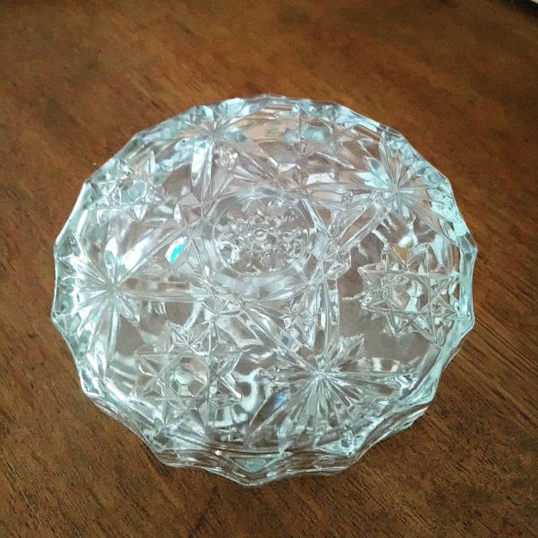 Jolie bonbonnière, vide poche ou sucrier ancien, en verre ciselé en parfait état !