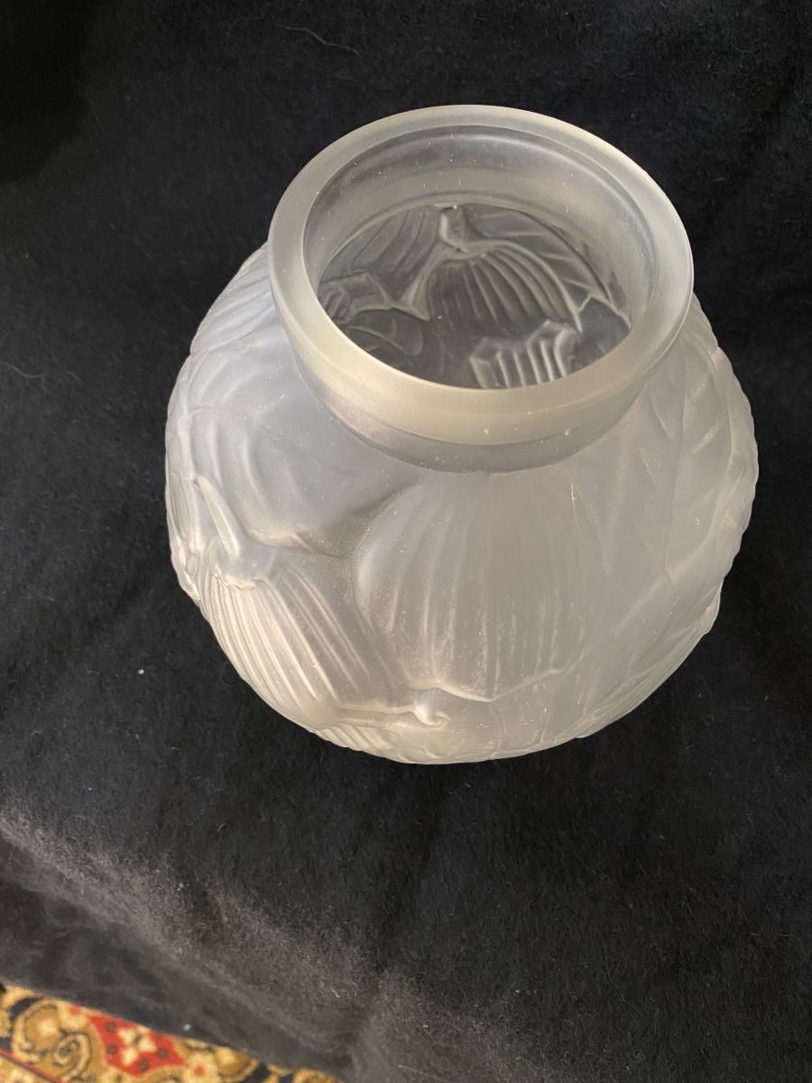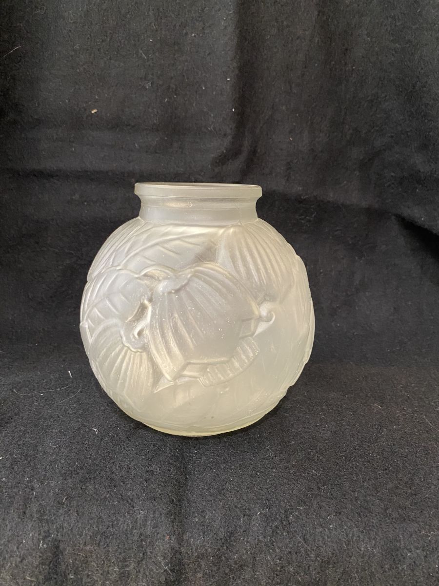 Vase en verre moulé décor floral - Années 30