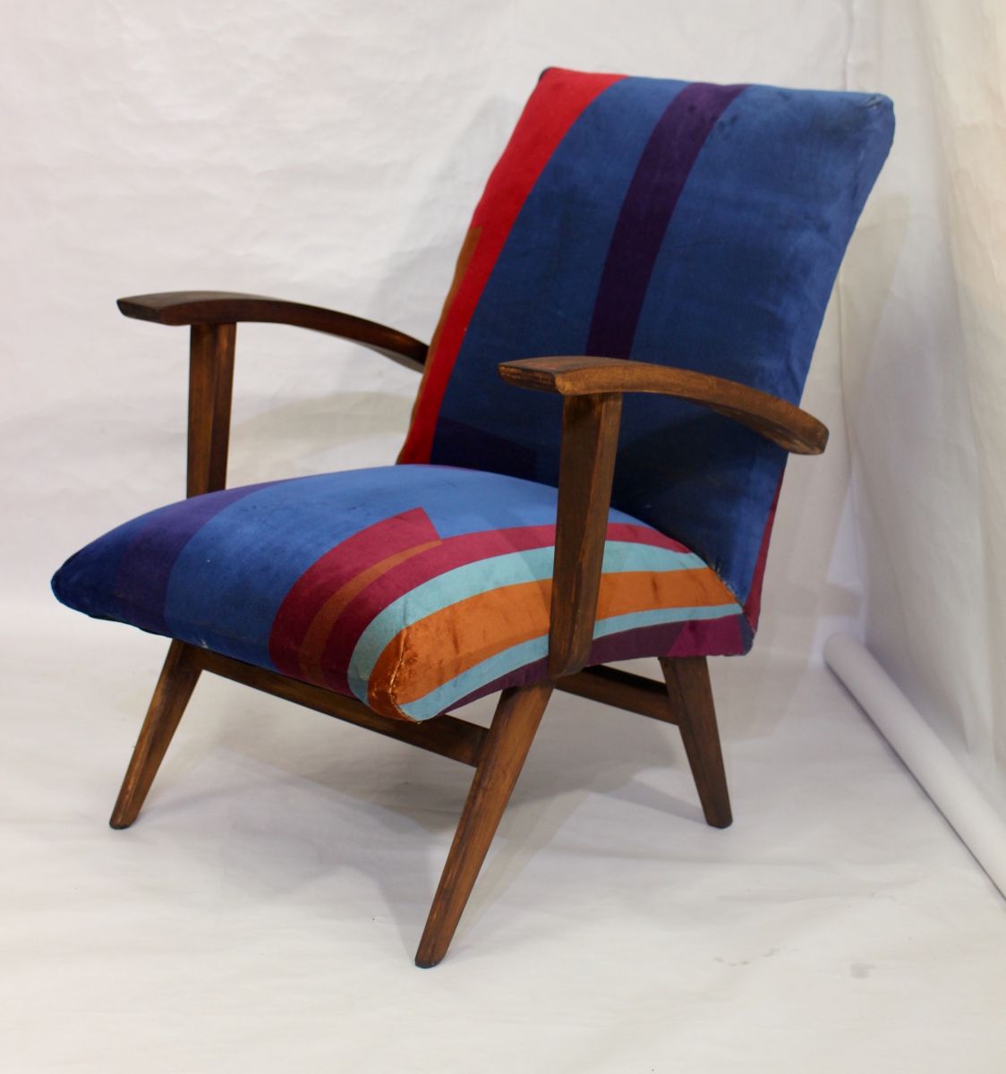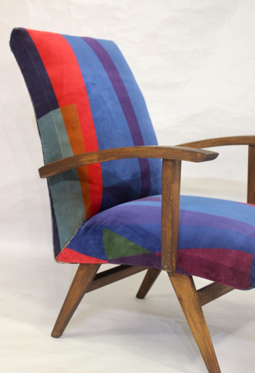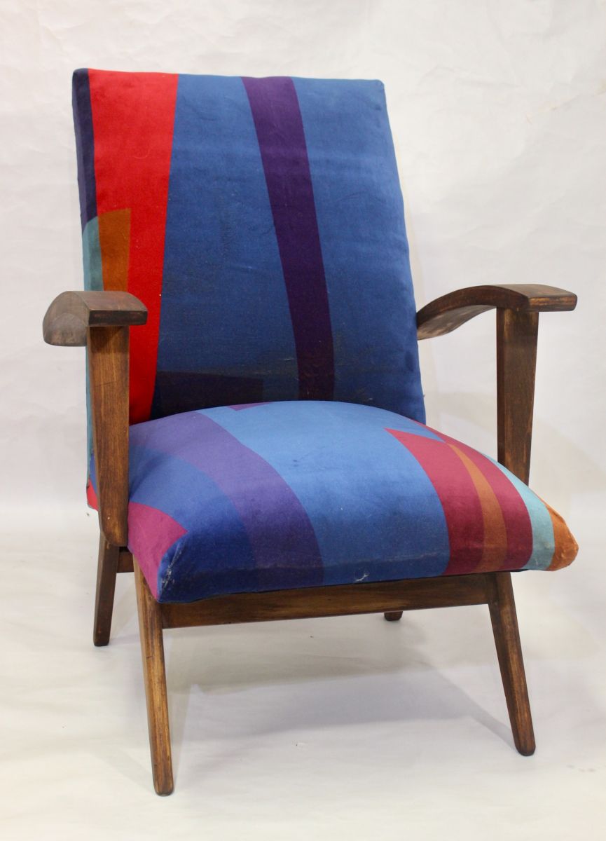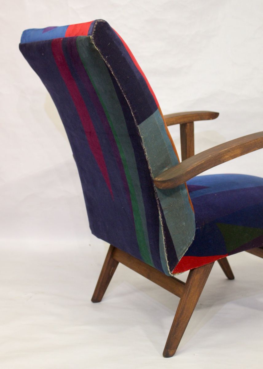 Fauteuil scandinave années 50 / 60 tissu velours impression