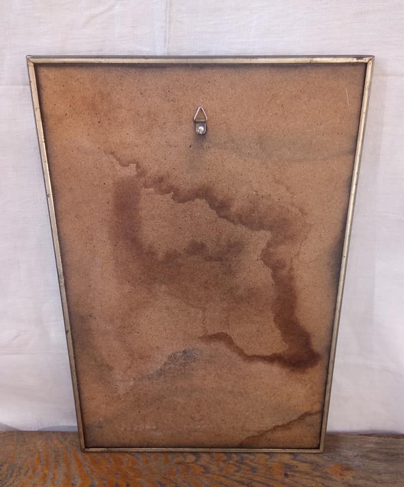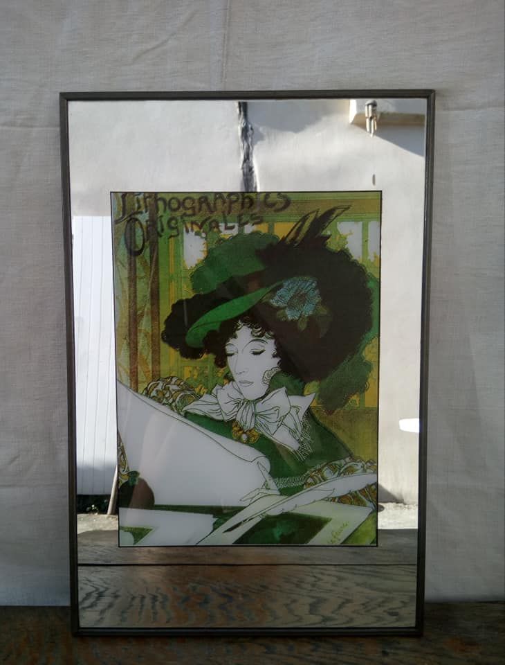 Miroir vintage représentant une femme et avec l'inscription "Lithographies originales"
