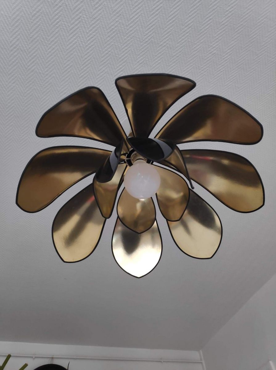 suspension XXL fleur de lotus de Robert Schuytener en carton laqué noir et intérieur or,