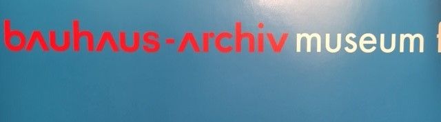 Elle représente la silhouette des archives du Bauhaus à Berlin avec les lucarnes semi-circulaires et la façade en éléments modulaires. Le logo apparaît dans les zones rouges et plus petites en jaune et bleu: les trois couleurs de base indiquent le thème du musée. Le studio graphique ott + stein a conçu de nombreuses affiches, catalogue pour des institutions culturelles à Berlin dans les années 80 et 90. Parmi eux se trouvaient de nombreuses œuvres pour les archives du Bauhaus.